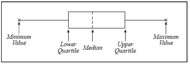 طريقة لتمثيل البيانات بالرسوم مبنية على اسس احصائية . ويكون ذلك بترتيب البيانات وايجاد الوسيط Median الذي سيقسم البيانات الى قسمين ، ومنها يمكن ايجاد الارباع لكل قسم ، يساعد في تبيان توزيع البيانات . يمكن ان يجرى الرسم باستعمال برنامج Excel من حزمة برامج Microsoft . ويمكن ان تكون مستطيلات الرسم عمودية او افقية ، اما النقاط البعيدة والشاذة فتظهر بعيدة Outliers . كما موضح في الرسوم الاتية :