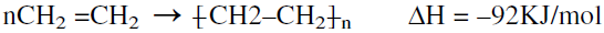 When ethylene is polymerized, the reactor temperature should be well controlled to avoid the endothermic decomposition of ethylene to carbon, methane, and hydrogen: