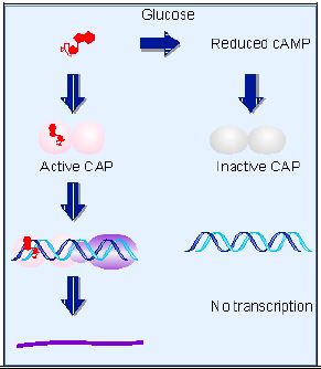 جزء من انظمة السيطرة العامة في العديد من البكتريا والاحياء المجهرية الاخرى ، وهو يمثل عمليات سيطرة موجبة لعملية الانتساخ ، فعند وجود تراكيز عالية فان β-Galactosidase يكون تحت فعل الكبح نظرا للكبح الذي يوفره الكلوكوز