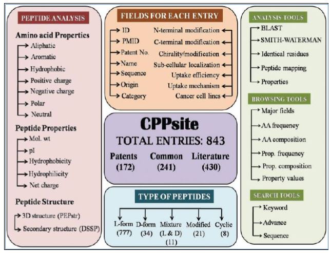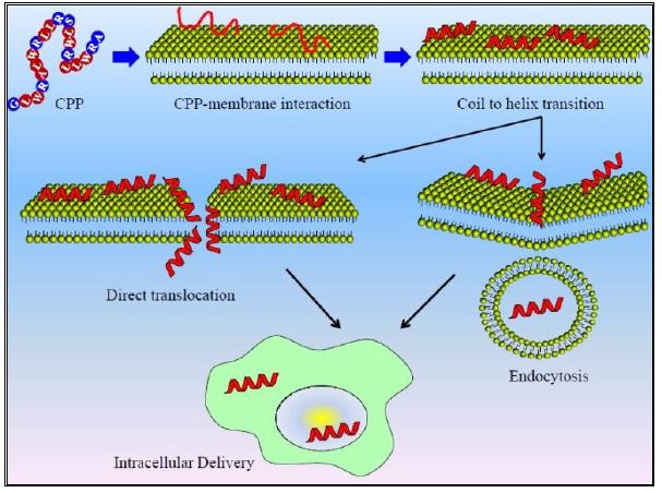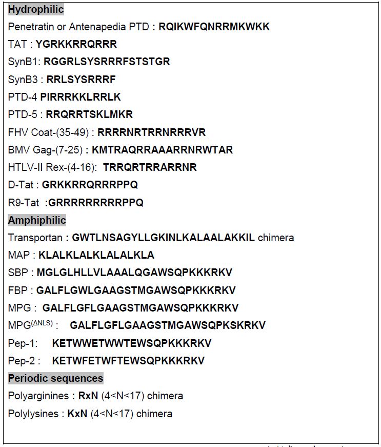ببتيدات CPPs تعرف على انها الدومينات الناقلة او (Translocating Sequences Membrane (MTSs اوTrojan Peptides وهي ببتيدات قصيرة اقل من 40 حامض اميني من الثمالات القطبية وغير القطبية المتبادلة وهذه تسمى Amphipathic ، وهناك نوع اخر يحوي على حوامض امينية كارهة للماء فقط ولها شحنة صافية واطئة .
