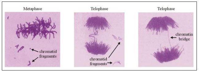 - تجزؤ الكروموسومات وبقاءها بشكل قطع غير قادرة على الاندماج مع مثيلتها.