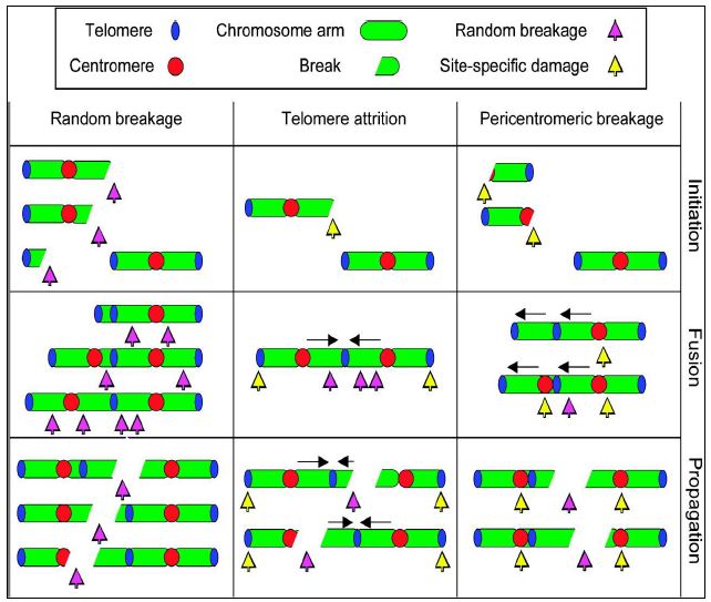 وهي حالة شائعة في الاورام الصلبة مثل سرطان القولون وسرطانات الدم . وتدرس الحالة من كافة النواحي سواء العدد او التشوهات لتطلق عليها حالة زعزعة الكروموسوم . والحالة يمكن ان تكون فقدان او اكتساب كروموسوم او تغيير في تركيبه ويتحكم في الحالة جينات خاصة تؤثر في الانقسام الخيطي وتضاعف DNA وعمليات الاصلاح وكذلك السيطرة على الانتساخ ، وتدخل الوراثة اللاجينية في الحالة اذ ان البروتينات المرتبطة بDNA تحدد معالم الكروموسومات وتعبئة مادتها الوراثية وكذلك تأهيلها للتعبير الجيني ، ومن الامراض الناتجة عن الحالة Fanconi Anemia و Bloom Syndrome وAtaxia Telangiectasia وغيرها .