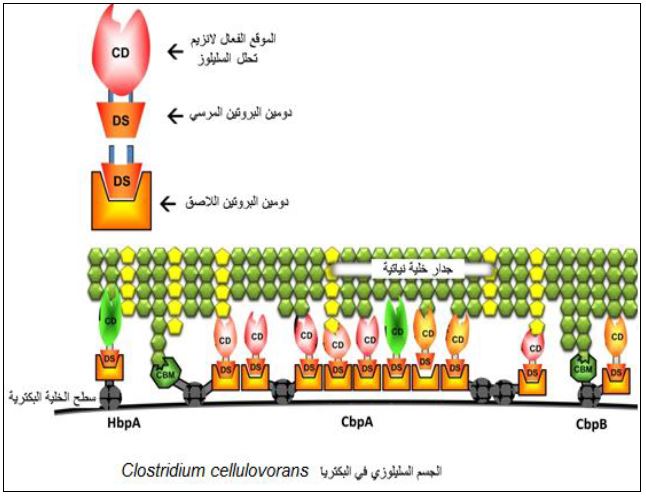 بروتين خاص يشكل أحد شطري التركيب الذي يقوم بربط الجسيم السليلوزي الحاوي على أنزيمات تحلل السليلوز مع السليلوز ويوجد منه نوعين، ويقوم البروتين اللاصق وبمساعدة البروتين المرسي من حمل الوحدة التي تقوم بتحليل السليلوز للمساعدة في تحليله وهو موضح في الشكل الآتي :