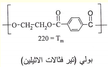 * ينصهر البولي (تيرفثالات الايثيلين) في درجة حرارة تقرب من (Tm = 220 ºC).