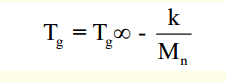 للوزن الجزيئي للبوليمرات تأثير ملحوظ على Tg ويمكن التعبير عن ذلك بدلالة المعادلة التجريبية التالية: