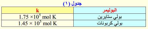 حيث أن k : ثابت خاص بكل بوليمر