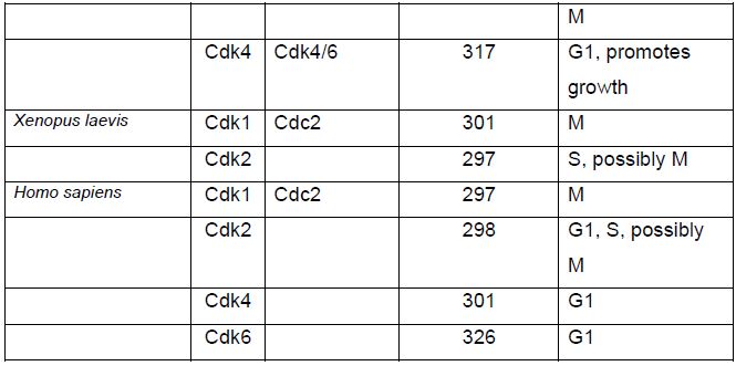 وتعد ثابتة اذ يمكن لخلايا الخميرة استخدام الانزيم البشري لاكمال فعاليتها . تقوم الانزيمات النشطة بفسفرة اهدافها من البروتينات عند ثمالات السيرين والثريونين (Serine-Threonine Kinase) ، ويوجد العديد منها كما موضح في الجدول الاتي :