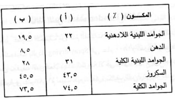 المواصفات القياسية الأوربية (أ) والأمريكية (ب) للبن المكثف المحلى