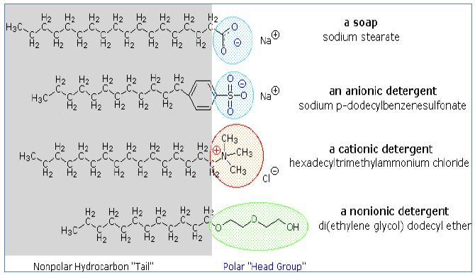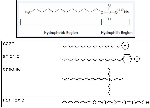 • Anionic Detergents هي Alkylbenzenesulfonates والجزء Alkylbenzene يكون Anions المحب للدهون وSulfonates هي المحبة للماء .