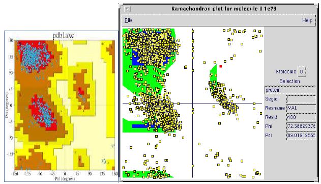 ويظهر الشكل التالي رسوم راماجدران الذي له برامج خاصة لحساب الزوايا ومواقع الذرات