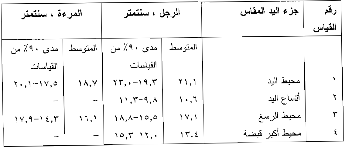 جدول رقم (4) ابعاد اليد الموضحة في شكل (۸)