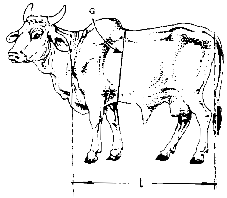 شكل (6) القياسات اللازمة لتقدير وزن الحيوان