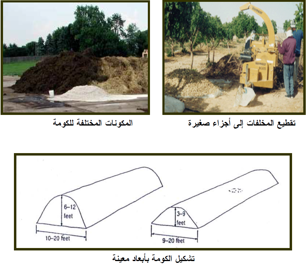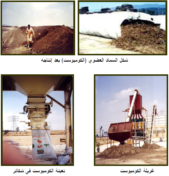 ويوضح شكل ( 1 ) صور لبعض من خطوات إنتاج الكومبوست.