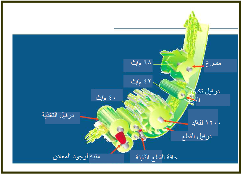 شكل ( 5 ): شكل مجسم يوضح كيفية تغذية وتقطيع مادة العلف (الذرة) وسرعة الدرافيل