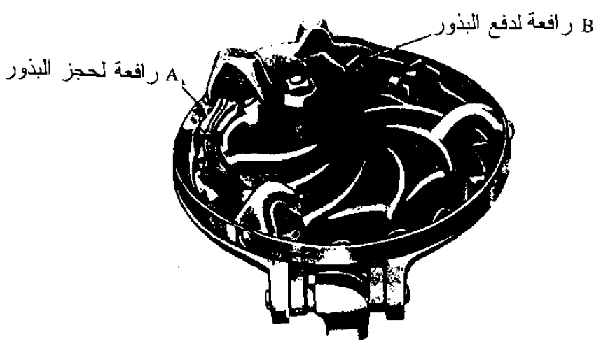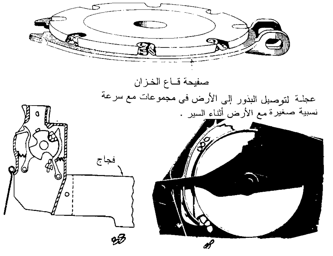 ويوجد على هذه الأقراص رافعة متصلة بزمبرك لحجز البذور الزائدة عن حجم الخلايا أثناء تحرك القرص تحتها وتوجد رافعة أخرى لدفع البذور للسقوط إلى أنابيب البذور.