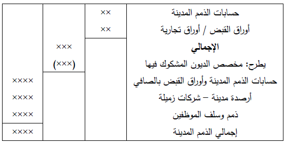 ويمكن عرض الذمم المدينة Receivables كما يلي