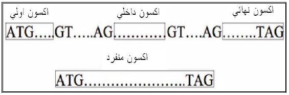 - الاكسونات المفردة Single Exons توجد في الجينات الخالية من الانترونات وتبدأ من شفرة البدء الى شفرة الوقف وهذه الأنواع موضحة في الشكل الاتي: