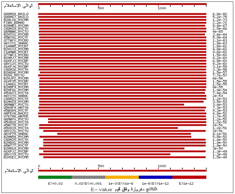 ويظهر البرنامج قيم E ، كما ان هناك دليل لوني لقيم E التي على ضوئها يحدد مدى التطابق وفرز التواليات او ترتيبها. والجزء الآخر من التقرير يكون نصي يظهر فيه تعريف بالتوالي وهويته وبعض القيم الإحصائية ، وتظهر اصطفافات توالي الاستعلام وتوالي قاعدة البيانات، ويظهر التطابق بنقطتين عمودية في حين التشابه يشار اليه بنقطة واحدة ، اما عدم التطابق فيترك فارغا .