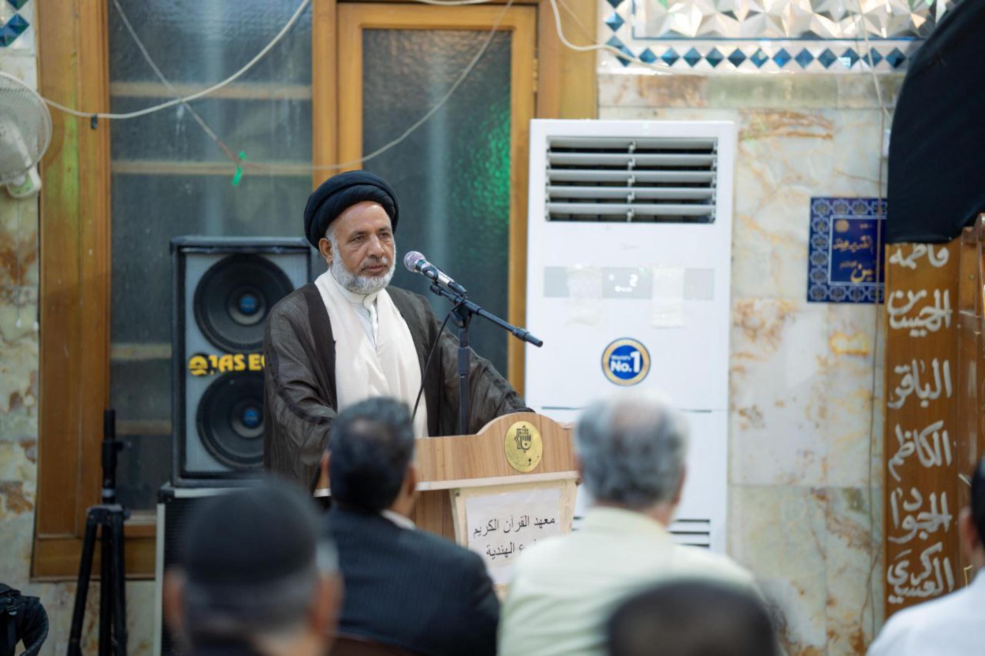 يواصل المجمَع العلمي للقرآن الكريم في العتبة العباسية المقدسة، تنظيم الأنشطة القرآنية في المحافظات العراقية؛ لنشر ثقافة كتاب الله العزيز. وتضمّنت الأنشطة إقامة دورة في أحكام التلاوة بعنوان (جواد الأئمة -عليهم السلام-)، في قضاء الهندية بمحافظة كربلاء المقدسة، شهدت مشاركة أكثر من 30 طالبًا. وقال مسؤول معهد القرآن الكريم / فرع الهندية التابع للمجمَع، السيد حامد المرعبي: إنّ "الدورة استمرّت عامًا كاملًا، شارك فيها أكثر من (30) طالبًا، تلقَّوا خلالها دروسًا مكثّفةً في النغم والتلاوة وأصول الأداء القرآني، وتهدف إلى إعداد جيلٍ واعٍ ومتقنٍ لكتاب الله العزيز". وأضاف أنّ "المعهد نظّم حفلًا ختاميًّا للدورة في مزار السيد محمد بن الحمزة (عليه السلام)، واستُهلَّ بتلاوةٍ للقارئ كريم الهنداوي، تلتها كلمة بيّنت أهداف هذه البرامج التي تنمّي وتصقل المواهب القرآنية، وتمكّن القرّاء من التلاوة الصحيحة والمتقنة، إلى جانب قراءة مجموعة من التلاوات التي قدّمتها نخبة من طلبة الدورة، إضافةً إلى تكريم الأساتذة المشاركين وتوزيع الجوائز والهدايا التقديرية على الطلبة المتميّزين".