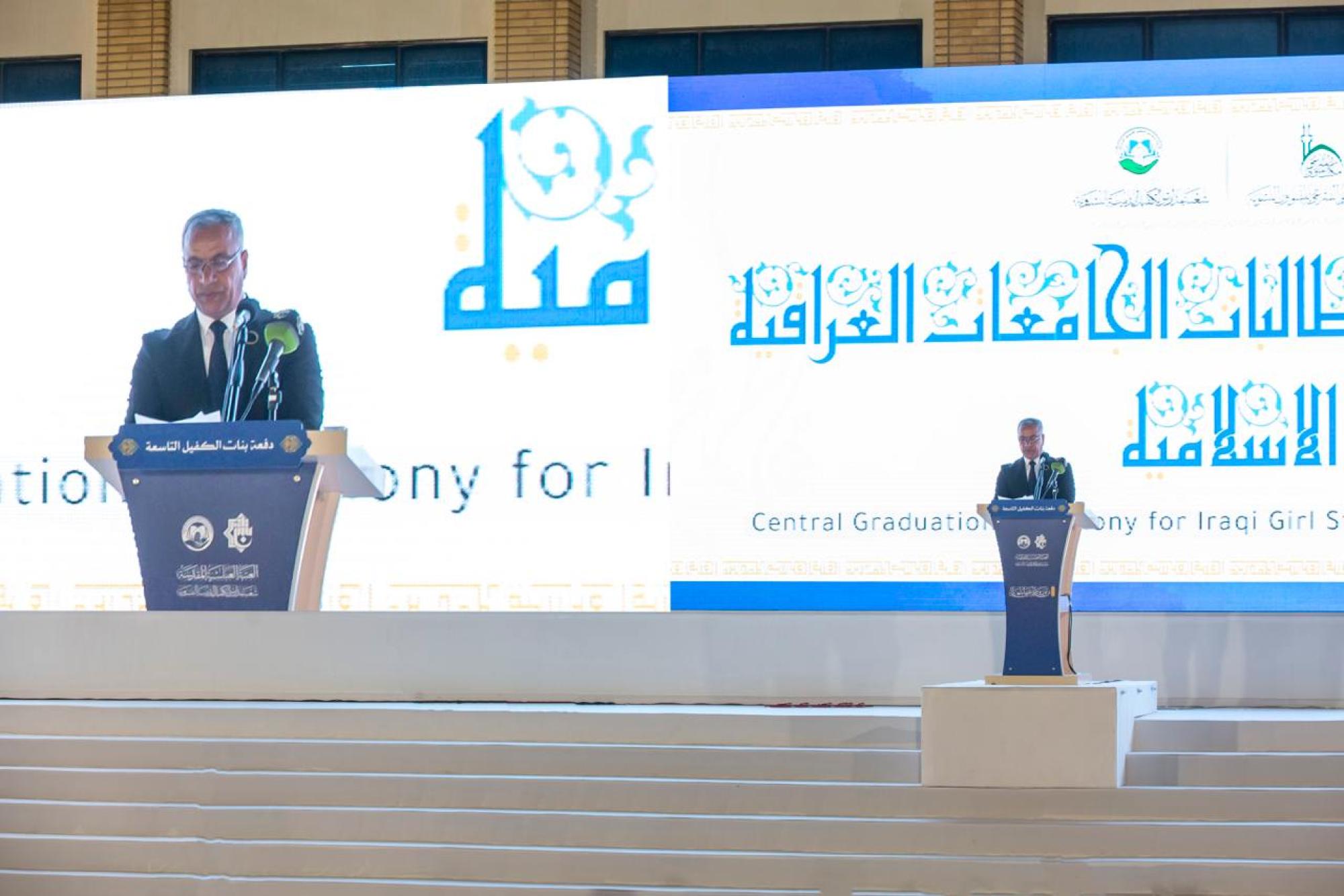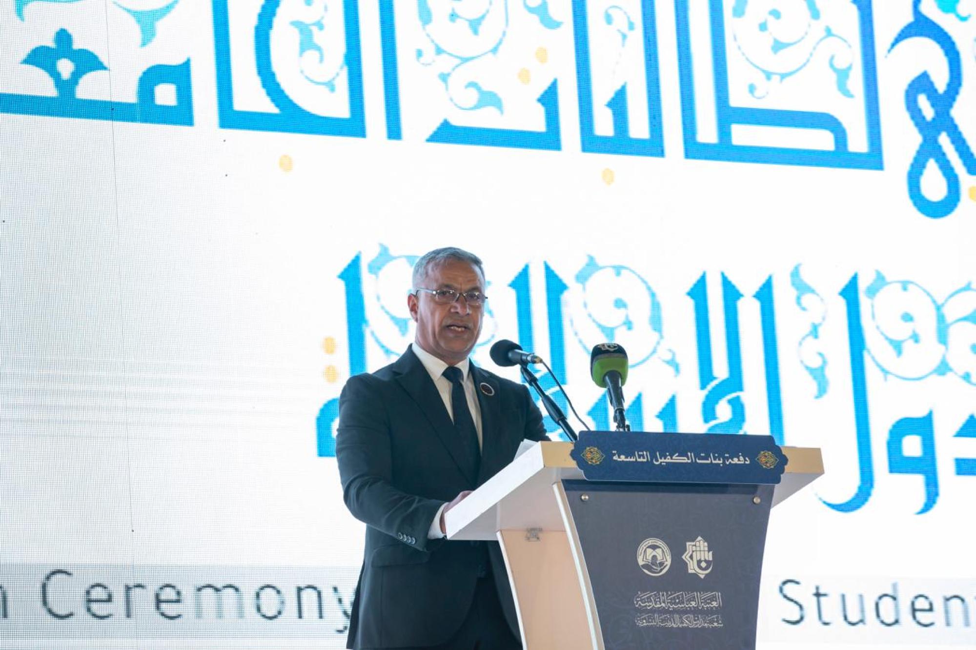أكّد رئيسُ الجامعة التقنية الجنوبية الدكتور عدنان عبد الله عتيق، أنّ البرامج التربوية والتعليمية للعتبة العبّاسية المقدّسة، تُسهم في نهضة المجتمع وتعزّز قِيَمه الإنسانية. جاء ذلك في كلمة الجامعات العراقية التي ألقاها، ضمن فعّاليات الحفل الختامي لتخرّج طالبات الجامعات العراقيّة والدول الإسلاميّة التاسع الذي تقيمه شعبةُ مدارس الكفيل الدينيّة النسويّة، التابعة لمكتب المتولّي الشرعيّ للشؤون النسويّة في العتبة المقدّسة، بمشاركة 5000 طالبةٍ، من مختلف المحافظات العراقيّة، وعددٍ من الدول الإسلاميّة. وقال عتيق: إنّ "العتبة العبّاسية المقدّسة تمثّل منارةً للعطاء والإيمان، وقد عوّدتنا بأن تكون نافذة ضياءٍ تطلّ على المستقبل، وتفتح دروب الأمل والمعرفة أمام الأجيال، فأنشأت الجامعات الرصينة والمراكز البحثية، ورعت المؤتمرات والبرامج الثقافية، واحتضنت الموهوبين والمُبدِعين، حتى غدت شريكًا حقيقيًّا في بناء الوعي وتحصين الشباب بالفكر الأصيل". وأضاف: "من أمثلة عطاء العتبة المقدّسة ما شهدناه من برامج تربوية وتعليمية وثقافية رائدة في مجالات شتّى، تبدأ بمحو الأمّيّة، وتمرّ بالتعليم والتنمية وتمكين المرأة، وتنتهي ببناء الشخصية المتوازنة المؤمنة، إذ تنهض بالمجتمع وتعزّز قِيمه الإنسانية والروحية". وبيّن أنّ "حفل تخرّج بنات الكفيل، يحقّق أهدافًا سامية للطالبات المشاركات، عَبرَ الاستلهام من سيرة السيدة فاطمة الزهراء (عليها السلام) دروس الإيمان والعلم والعطاء والمسؤولية" موصيًا الطالبات بأن "يكوننّ امتدادًا لذلك النور الطاهر، ويفتخرن بالهوية الفاطمية المُشرِقة".