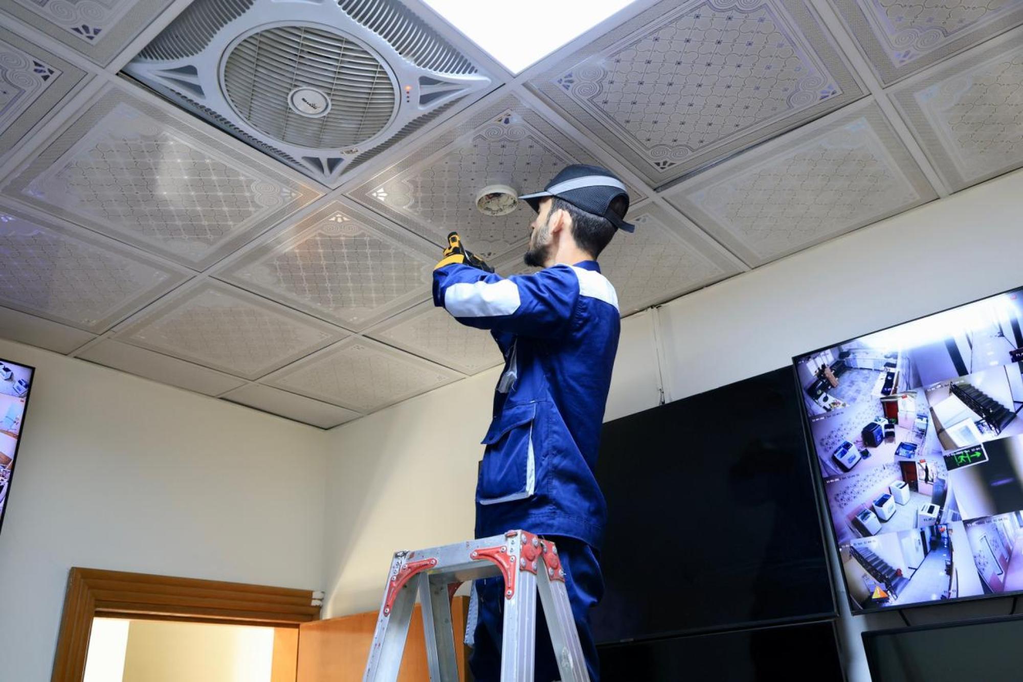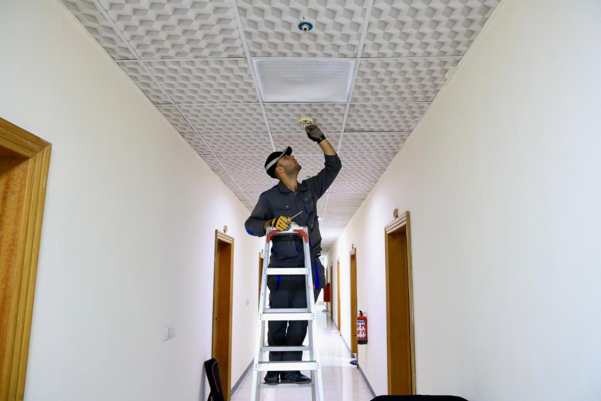 قسم الصيانة يجري أعمال الإدامة لمنظومات الإطفاء في مبنى الأقسام الداخلية بجامعة العميد