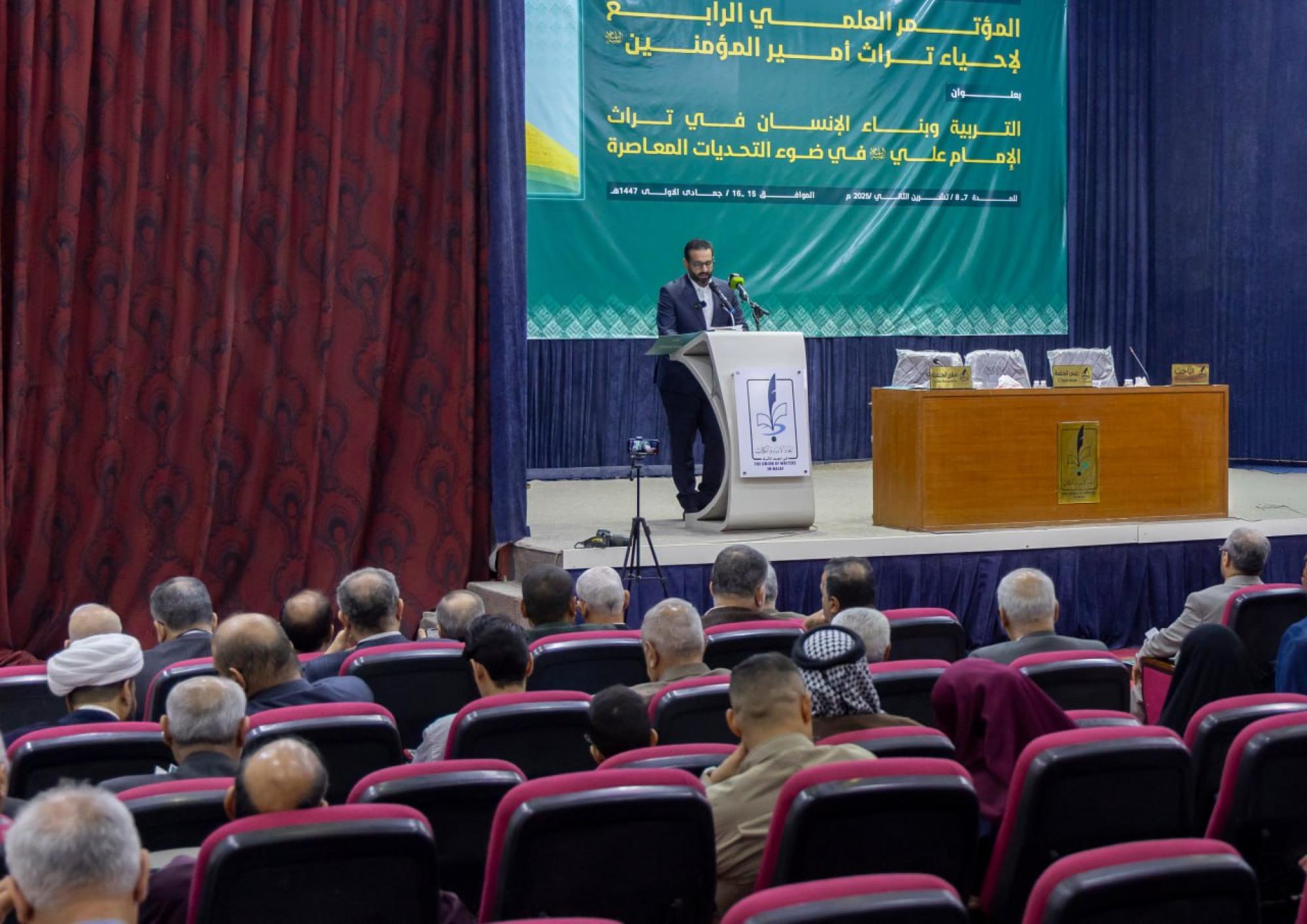 أكد المعاون الثقافي لأمانة مسجد الكوفة المعظم السيد ذو الفقار الحيدري، أنّ تراث الإمام علي (عليه السلام) مشروع تربوي لبناء الإنسان ومواجهة تحديات العصر. جاء ذلك في أثناء كلمته ضمن فعاليات المؤتمر العلمي الرابع لإحياء تراث أمير المؤمنين (عليه السلام)، الذي يُقام برعاية العتبة العباسية المقدسة، وينظمه مركز المرايا للدراسات والإعلام، بالتعاون مع جمعية العميد العلمية والفكرية، وأمانة مسجد الكوفة المعظم، وجامعتي الكفيل والعميد، وكلية الآداب في جامعة الكوفة، ومركز دراسات الكوفة، واتحاد الأدباء والكتاب في النجف الأشرف، وتحت عنوان (التربية وبناء الإنسان في تراث الإمام علي -عليه السلام- في ضوء التحديات المعاصرة). وقال الحيدري: إنّ "تراث أمير المؤمنين (عليه السلام) تشرق فيه رؤية إنسانية واسعة، تشكل ميدانًا لصياغة الوعي وتغذية الفكر وتهذيب السلوك، وتطوير مؤسسات المجتمع على قاعدة تربوية متكاملة، فكل كلمة في نهجه الشريف تنير دربًا، وتمنح الفكر أفقًا رحبًا، وتدعو الإنسان إلى أن ينهض بثقله المعرفي والأخلاقي والثقافي". وأضاف، أنّ "مشاركتنا اليوم في هذا المؤتمر العلمي، امتداد لرسالة تحتضنها أمانة المسجد، تعزز عبرها فضاءات البحث، وتمنح المشاريع الثقافية جسورًا تتصل بعمق تراث الإمام علي (عليه السلام)، وتلتقي مع تطلعات الأجيال نحو مستقبل يزدهر بالوعي والمسؤولية والإبداع". وبيّن أنّ "تربية الإنسان في نهج الإمام علي (عليه السلام) بناء شامل يلامس العقل والقلب والموقف والعمل، تربية تتيح للإنسان أن يدرك مكانته في الوجود، وأن يتعامل مع التحولات المعاصرة بثقة راسخة، وأن يصنع أثره في الحياة بروح عامرة بالقيم، وعقل مفعم بالبصيرة، ووجدان ينبت الخير ويثمره، إذ تتحلى محاور هذا المؤتمر في خدمة هذه الرؤية، عبر استحضار القيم التربوية الأصيلة، وتقديم قراءات متخصصة تستمد من تراث الإمام علي (عليه السلام) قواعد تتشكل منها استراتيجيات تعليمية ومجتمعية، تحفز الطاقات، وتطلق قدرات الشباب، وتعبر بالتجارب التربوية نحو آفاق أكثر اتساعًا في الأداء والأثر". وأوضح، أنّ "أمانة مسجد الكوفة المعظم تؤمن بأن لكل مشروع فكري ثمرة تتصل بحياة الإنسان مباشرة، ومن هذا الإيمان تنطلق مبادراتها وبرامجها الثقافية التي تلتقي مع روح هذا المؤتمر في أهدافه ورسالته؛ خدمةً لتكوين تربوي يسهم في ترسيخ الوعي الجمعي، ويعزز قيم العدل والكرامة واحترام الإنسان، وتبارك الأمانة القائمين على هذه الجهود، وتثمن مشاركة الباحثين الذين يقدمون رؤاهم في بناء الإنسان وفق ما تضيئه مدرسة الإمام علي (عليه السلام) من مبادئ سامية، ورؤية تربوية تحفز على الإبداع والنهضة والرقي". وتابع أنّ "الأمة واجهت على مر العصور تحديات كبرى، غير أنّ تحديات عصرنا تتخذ صورًا أكثر تعقيدًا وتشابكًا، تحديات معرفية، وأخلاقية وتربوية، وفكرية، وتكنولوجية، تستهدف الوعي وتعيد تشكيل الهوية وتفرض استهلاكًا فكريًّا غير منضبط، فتغدو فيها العقول ميدان الصراع الأول، ولذلك تصبح العودة إلى مدرسة الإمام علي (عليه السلام) ضرورة حضارية بوصفها طريقًا إلى بناء عقل حر لا يخضع للجهل ولا يستعبد بالباطل، وإلى تنشئة إنسان يدرك دوره في صياغة المستقبل، وإلى ترسيخ قيم المسؤولية والمواطنة والإصلاح، وإلى الدفاع عن الهوية دون انغلاق أو انكفاء، وإنّ تراث الإمام علي (عليه السلام) في التربية مشروع حياة كامل، تتأسس فيه المبادئ، وتهذب به النفوس، وتتربى عليه الأجيال في البيت والمدرسة والمجتمع والدولة".