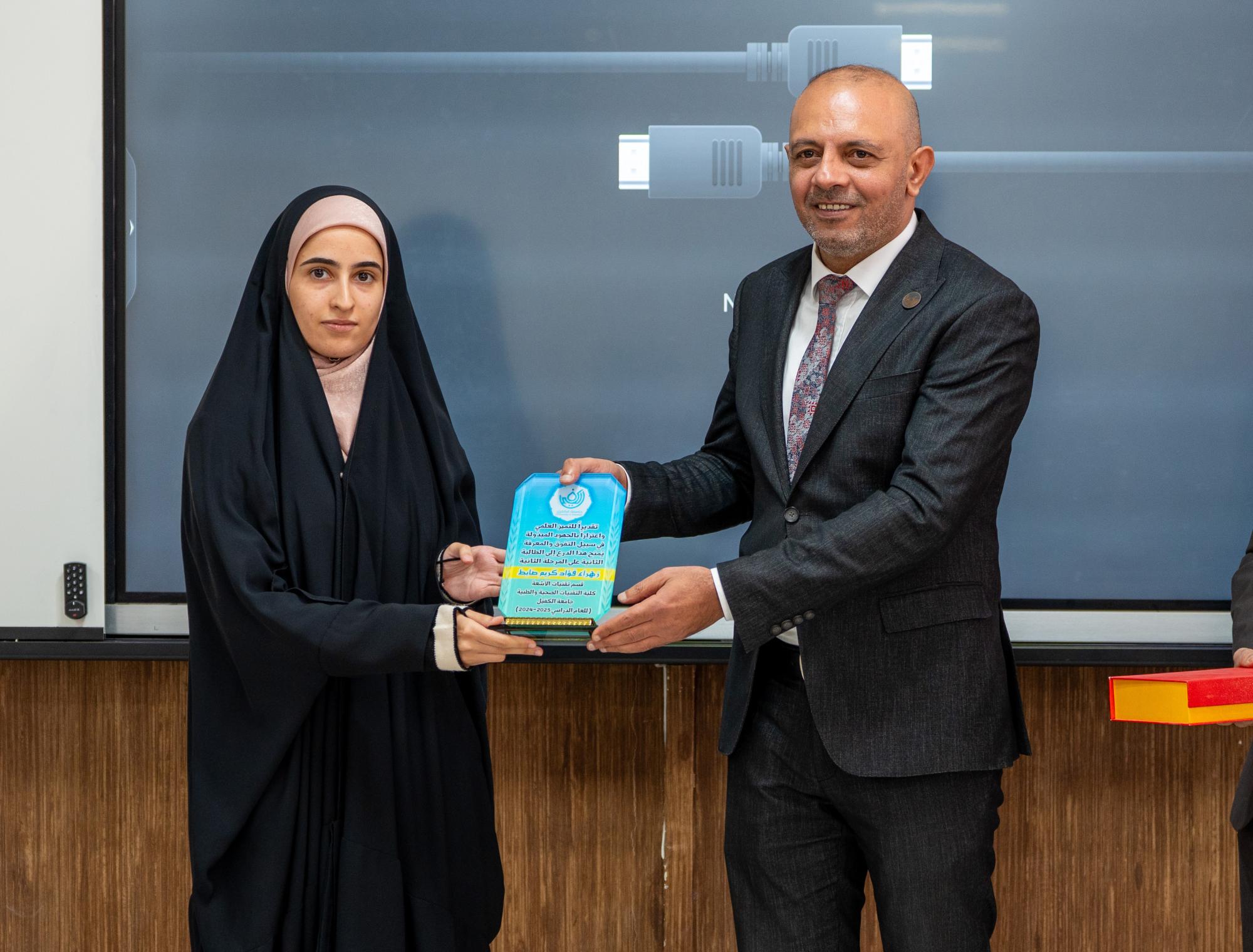 نظّمت كلية التقنيات الصحية والطبية في جامعة الكفيل معرضًا علميًا لطلبة قسم تقنيات الأشعة، احتفاءً بيوم الأشعة العالمي. وعرض طلبة الكلية مهاراتهم ومشاريعهم منها الأجهزة والتقنيات الخاصة بالأشعة بما في ذلك الأشعة السينية (X-Ray) ومجسمات خاصة بأجهزة الرنين المغناطيسي (MRI) وجهاز المفراس (CT-Scan)، إضافة إلى صور ومجسمات توضيحية صمّمها الطلبة بأنفسهم تحاكي الحالات التشخيصية. وأشاد رئيس الجامعة الدكتور نورس شهيد الدهان بالجهود المبذولة في تنظيم المعرض وتشجيع روح الابتكار والإبداع لدى الطلبة، كما تم تكريم الطلبة الثلاثة الأوائل في جميع المراحل تقديرًا لتفوقهم وتميزهم الأكاديمي.