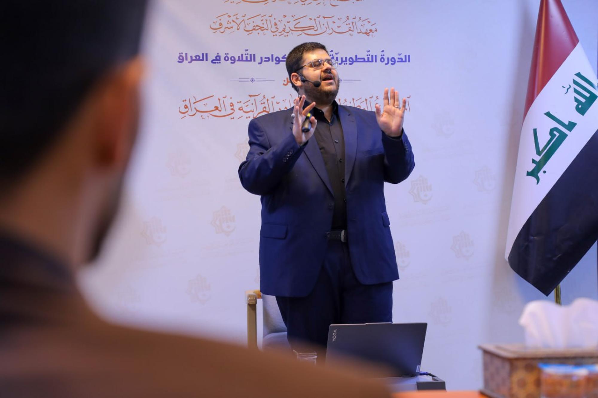 يواصل المجمع العلمي للقرآن الكريم في العتبة العباسية المقدسة إقامة ورش ومحاضرات متخصصة لاكتشاف المواهب وتنميتها، ولتطوير الملاكات القرآنية في مختلف المحافظات العراقية. وتولى معهد القرآن الكريم في النجف الأشرف التابع للمجمع تنظيم (الدورة التطويرية الأولى لإعداد كوادر التلاوة في العراق)، في خطوة تهدف إلى الارتقاء بالعمل القرآني وتطويره. وقال أحد ملاكات وحدة التلاوة في المعهد، السيد محمد علي رشيد: إنّ "الفقرة الثالثة من البرنامج التطويري جاءت بمحاضرة حملت عنوان (الأسس المنهجية لإعداد القرّاء)، قدمها السيد علي البياتي على فترتين تدريبيّتين". وأوضح أنّ "المحاضرة استعرضت جملة من الموضوعات المهمة، من بينها: النبر القرآني وأساليبه، والمنهجيات المعتمدة في إعداد القرّاء البراعم، إضافة إلى آليات اكتشاف المواهب القرآنية ورعايتها وتطويرها، فضلًا عن استراتيجيات التدريس التي تسهم في الارتقاء بالمستوى القرآني لدى المتعلمين". وتابع رشيد أنّ "البرنامج التطويري تضمن محاضرة قدمها الدكتور ماهر حميد بعنوان (الإدارة والتخطيط القرآني الحديث)، وركز فيها على الأسس المعاصرة لإدارة البرامج القرآنية، ومواصفات القائد الناجح في المؤسسات القرآنية، إضافة إلى آليات اتخاذ القرار، والعمل بروح الفريق، وإدارة الخلافات داخل فرق العمل على نحو يضمن استمرارية الأداء وتطوره".