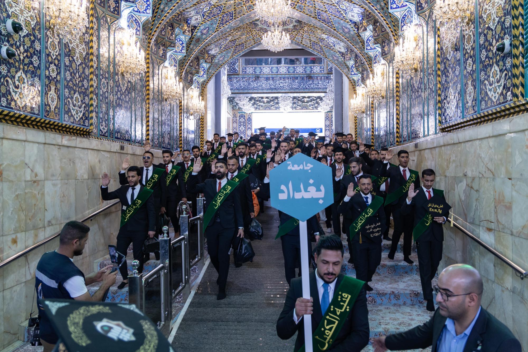 أوضح قسم رعاية الصحن الشريف في العتبة العباسية المقدسة خطته الخاصة بإقامة الحفل المركزي لتخرج طلبة الجامعات العراقية (دفعة على هدي القمر السادسة). وتقيم الحفل شعبة العلاقات الجامعية والمدرسية التابعة لقسم العلاقات العامة في العتبة المقدسة، ضمن مشروع فتية الكفيل الوطني، وتحت شعار (من غيث كربلاء ينبت العطاء)، بمشاركة أكثر من 5 آلاف طالب من 75 جامعة حكومية وأهلية، من مختلف محافظات العراق. وقال مسؤول شعبة الصحن الشريف في القسم السيد رياض خضير حسين: إنّ "من مهام القسم خلال الحفل هو تهيئة باحة باب القبلة لمرقد أبي الفضل العباس (عليه السلام)؛ لاستقبال الطلبة وتأديتهم للقَسَم، عَبرَ فرش السجاد وتوزيع مقاعد الجلوس". وأضاف، أنّ "العمل يشمل أيضًا تجهيز المنصة الخاصة بالحفل، وتحديد مسارات مرور الطلبة بما لا يتقاطع مع حركة الزائرين".