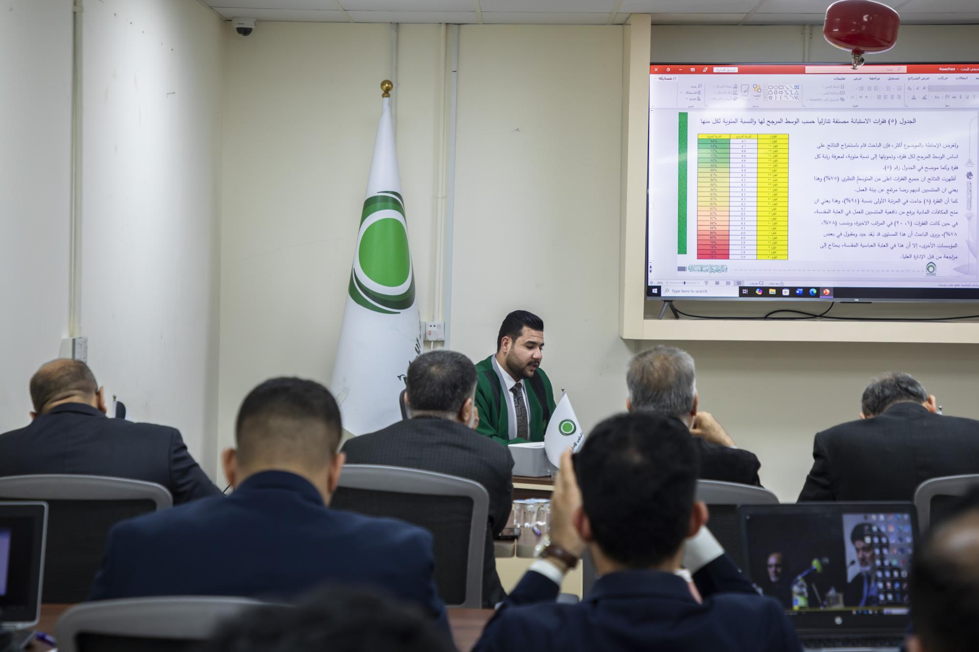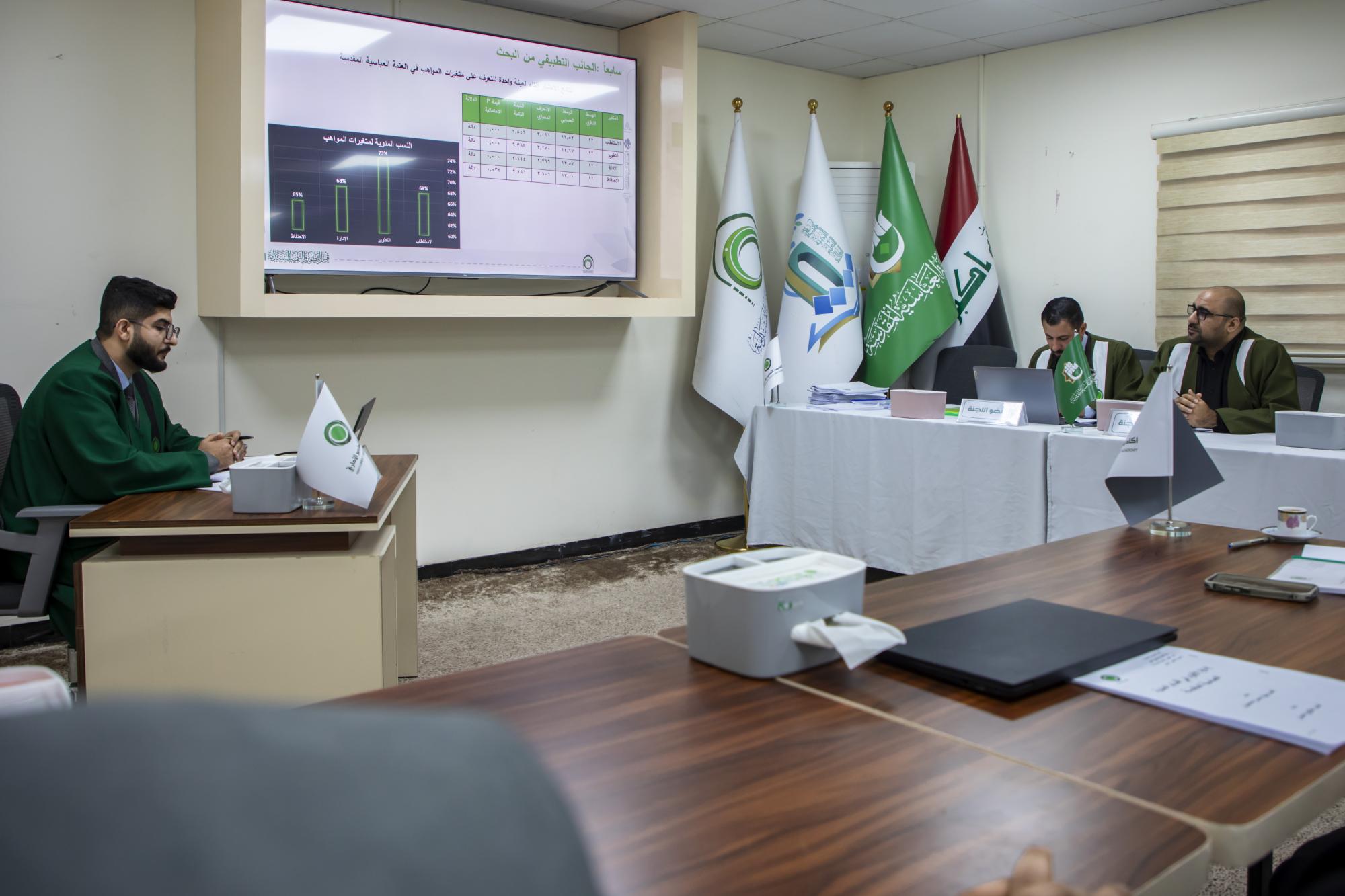ناقشت أكاديمية التطوير الإداري التابعة لقسم التطوير والتنمية المستدامة في العتبة العباسية المقدسة، بحوث تخرج الدفعة الخامسة من طلبتها. وشهدت جلسة مناقشة البحوث حضور عدد من أعضاء مجلس إدارة العتبة المقدسة، كلًّا من الدكتور عباس الدده الموسوي، والدكتور أفضل الشامي، والسيد كاظم عبادة، ومجموعة من ملاكات الأكاديمية. وقال مدير الأكاديمية، السيد رضا العبودي: إنّ "الأكاديمية اختتمت مناقشة بحوث التخرج للدفعة الخامسة لطلبتها من منتسبي العتبة المقدسة، بحضور عدد من أعضاء مجلس إدارتها". وأضاف، أنّ "البحوث تطرقت إلى تذليل معوقات العمل، ووضع الحلول والمقترحات لتحسين سير العمل في مختلف أقسام العتبة المقدسة". وبيّن، أنّ "أهمية هذه الأبحاث تأتي عبر الدور الفعال للمشاركين، والبالغ عددهم 32 طالبًا، ويمثلون غالبية أقسام العتبة المقدسة".