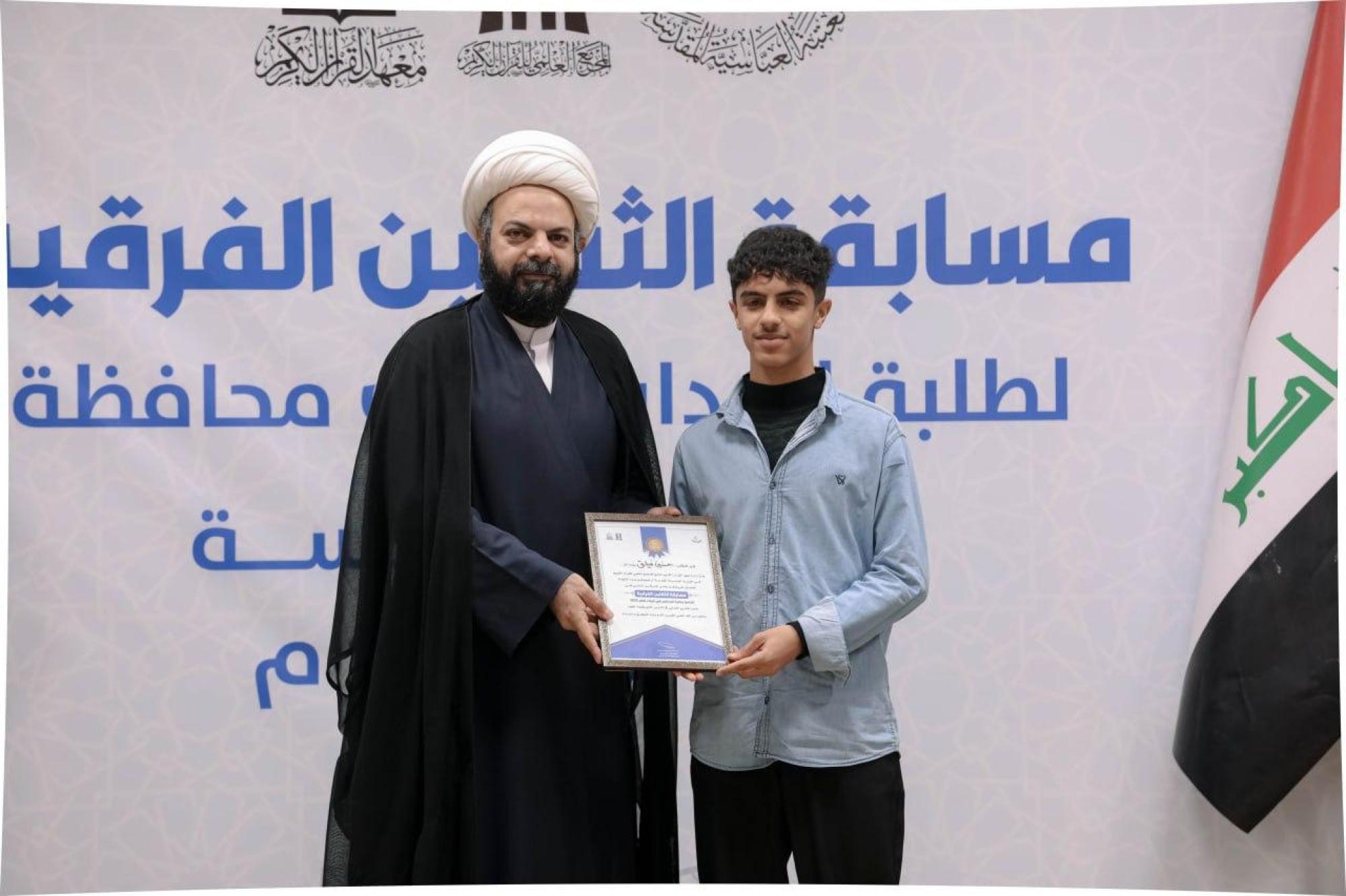 يواصل المجمع العلمي للقرآن الكريم في العتبة العباسية المقدسة، إقامة مسابقة الثقلين الفرقية لطلبة مدارس كربلاء، ضمن المشروع القرآني في المدارس. وقال مدير معهد القرآن الكريم في كربلاء التابع للمجمع الشيخ جواد النصراوي: إنَّ "المعهد يواصل إقامة مسابقة الثقلين الفرقية لطلبة مدارس محافظة كربلاء، ضمن مشروعه القرآني في المدارس، وشملت هذه النسخة جولات عدة شاركت فيها 6 مدارس من كربلاء، وهي: متوسطة الإقدام، وعلي الوردي، وابن حيان، والعلامة الحلي، والرواد، وإمام المتقين ". وأضاف أنَّ "المسابقة أُقيمت لتعزيز الجانب المعرفي لدى الطلبة، عبر مجموعة من الأسئلة الفقهية والعقائدية والقرآنية التي تمس واقعهم وتسهم في تنمية وعيهم الديني".