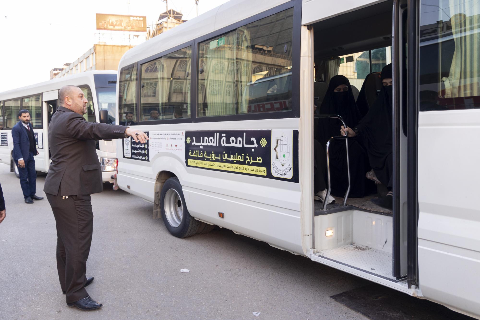 وصول الطالبات المشاركات في حفل تخرج بنات الكفيل العاشر إلى العتبة العباسية المقدسة