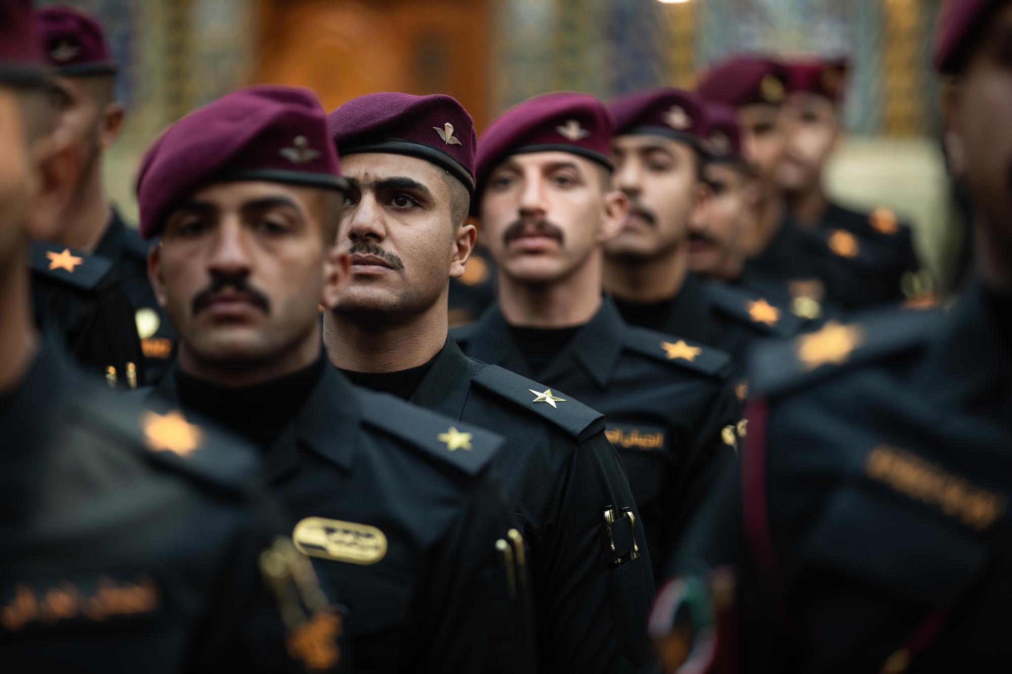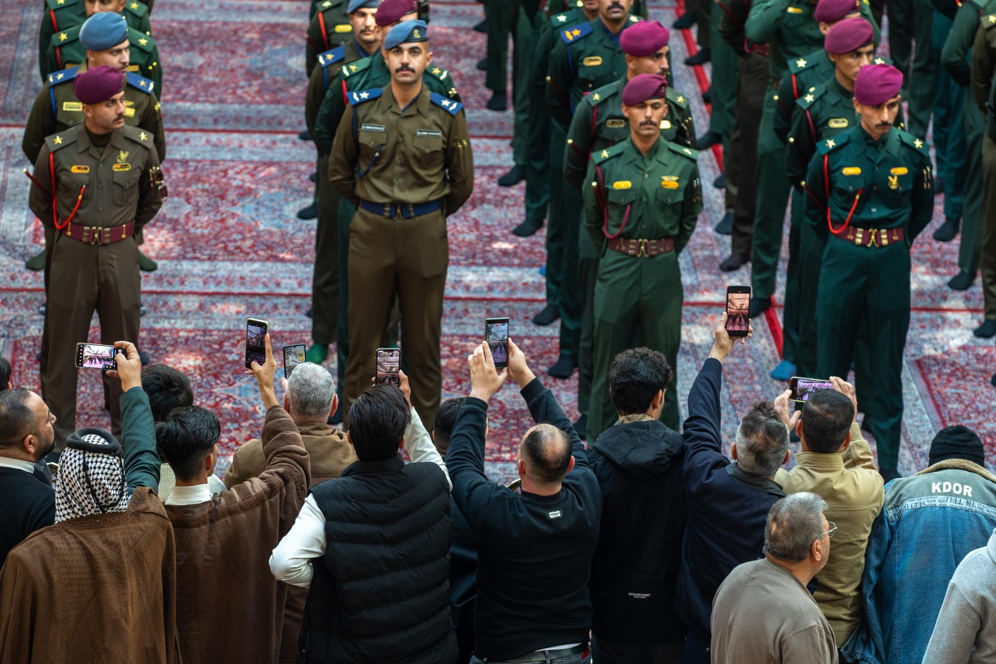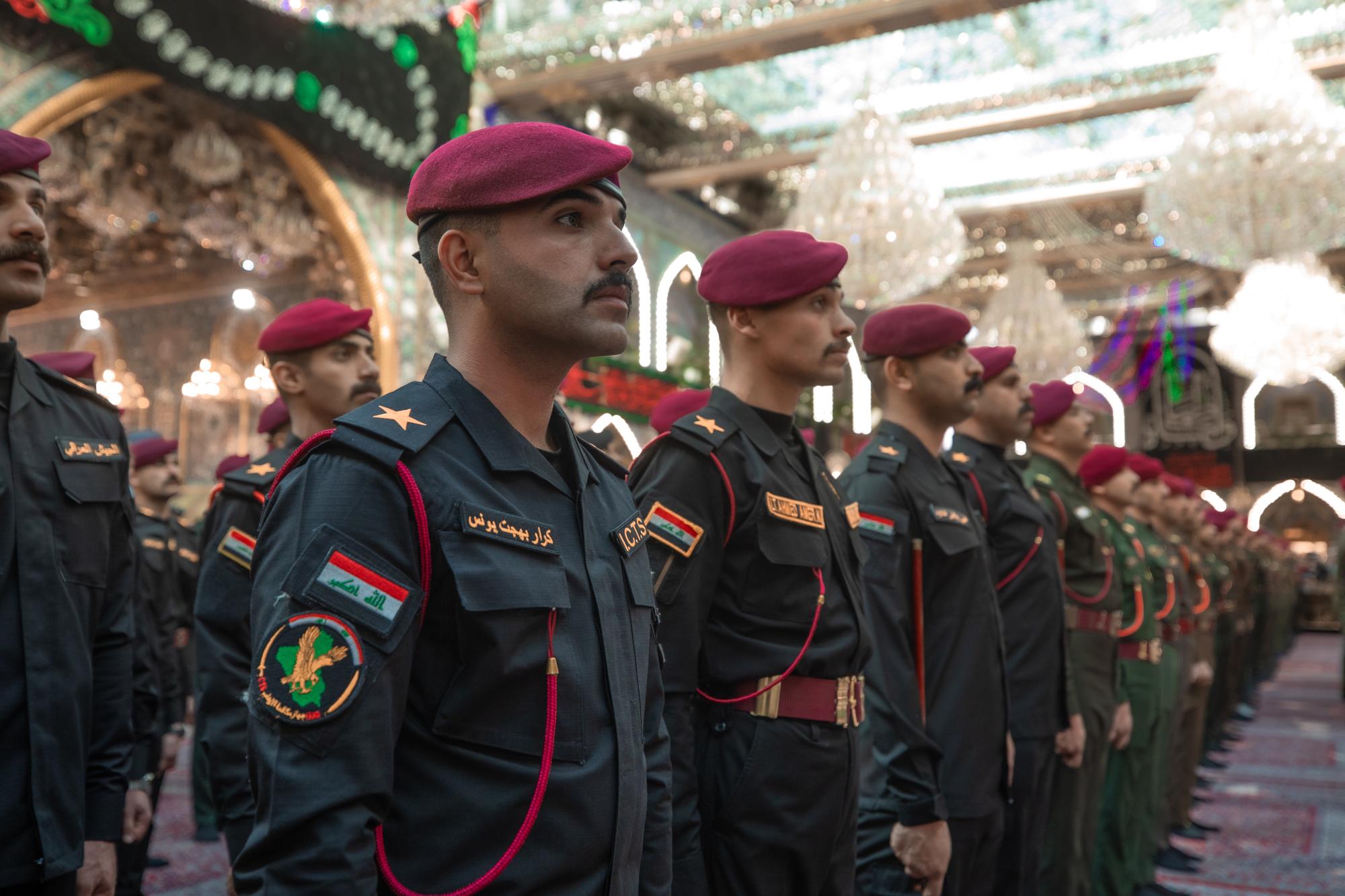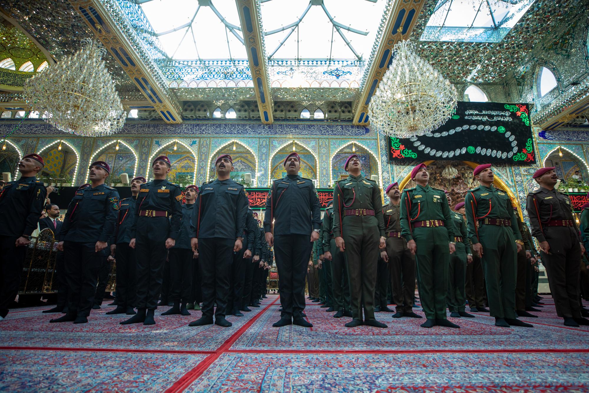 طلبة الكلية العسكرية يؤدون قسم التخرج عند مرقد أبي الفضل (عليه السلام)