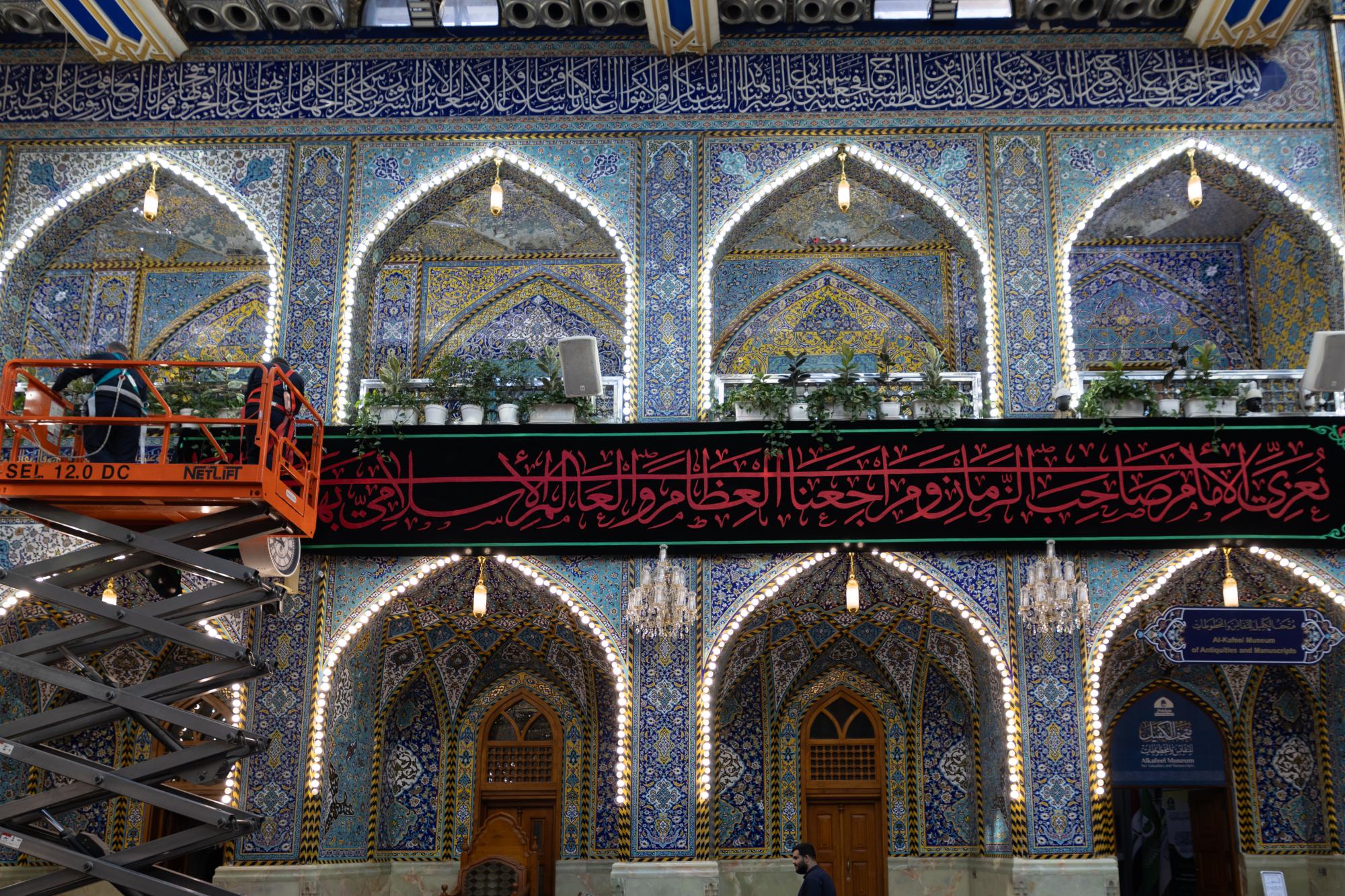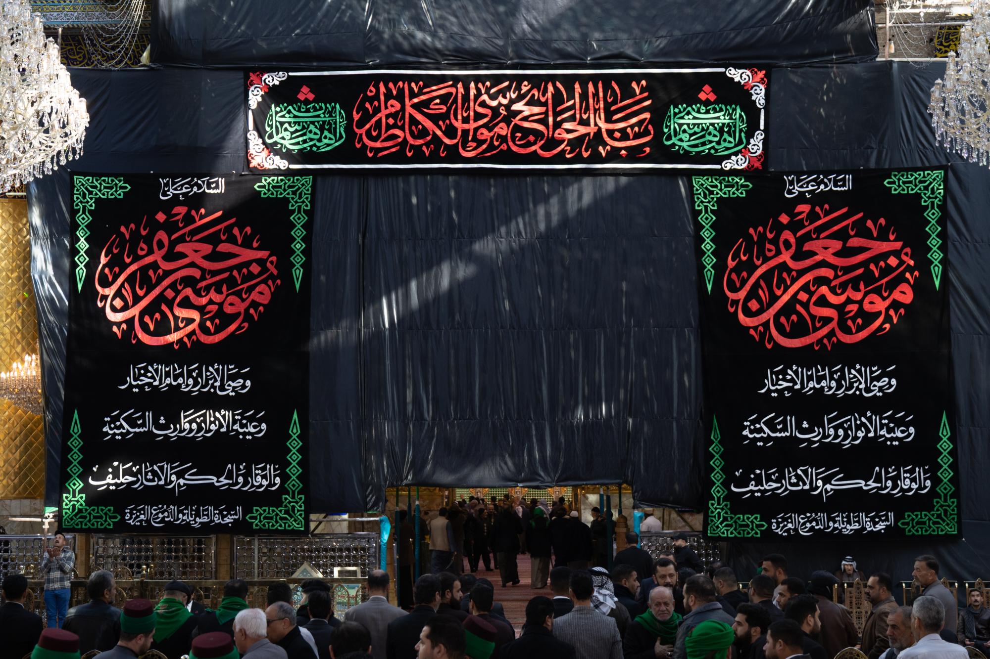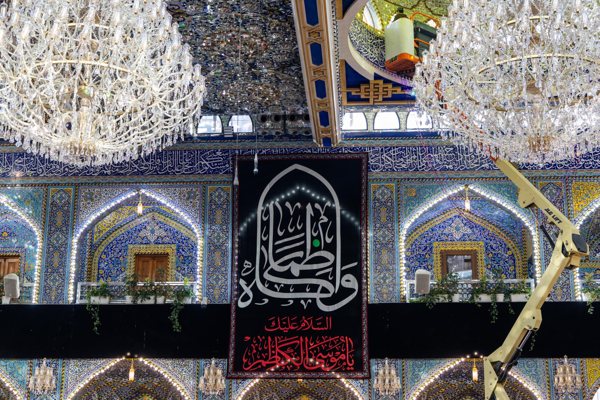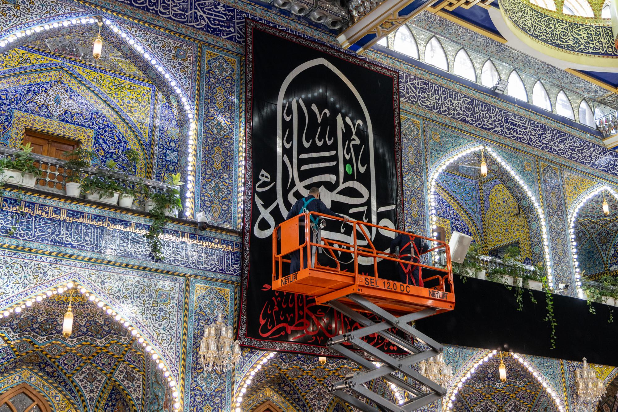 العتبة العباسية المقدسة تنشر لافتات السواد بذكرى شهادة الإمام الكاظم (عليه السلام)