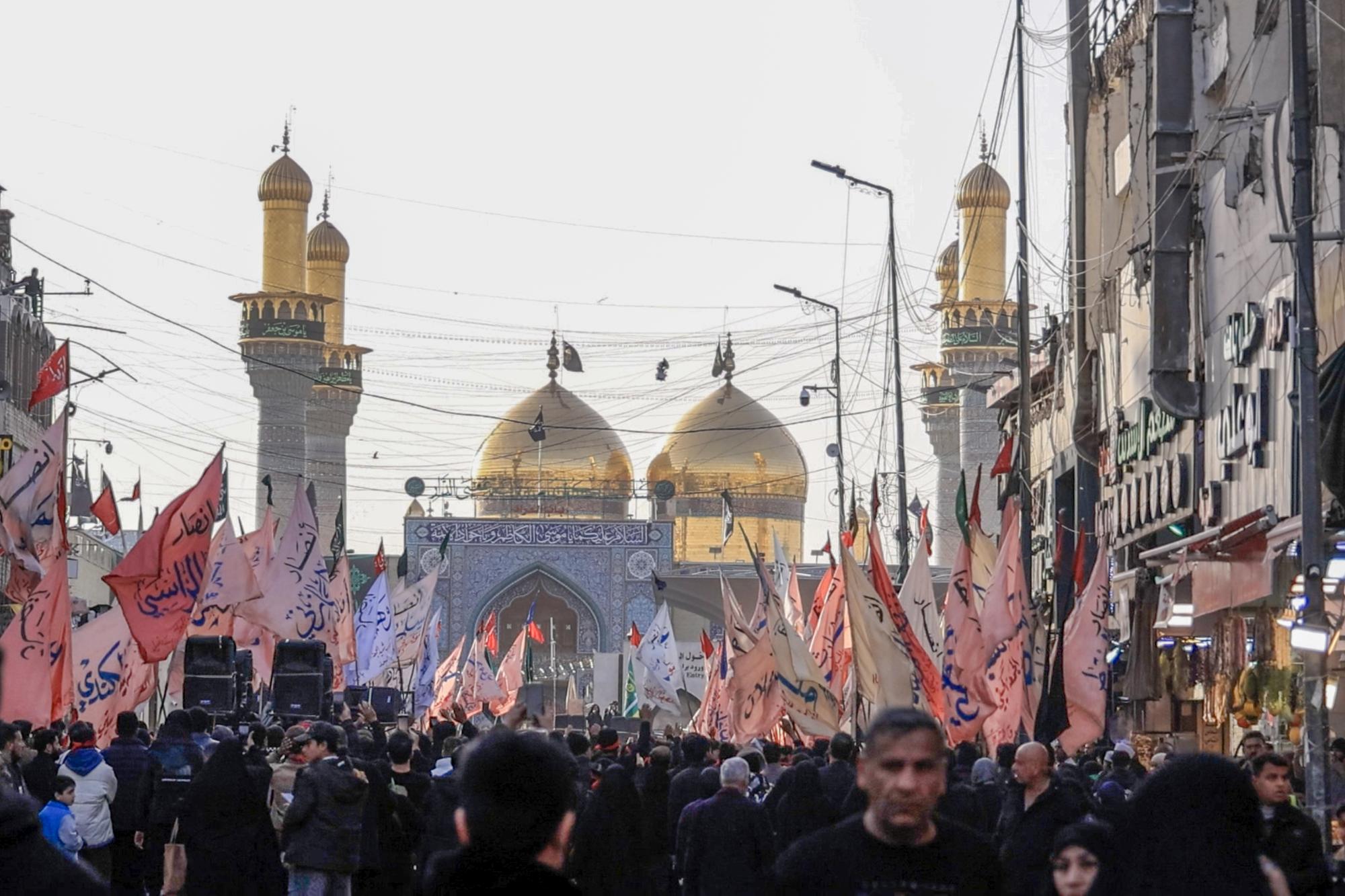 بذكرى شهادته.. جموع المعزين تواصل توافدها سيرًا على الأقدام نحو مرقد الإمام الكاظم (عليه السلام)