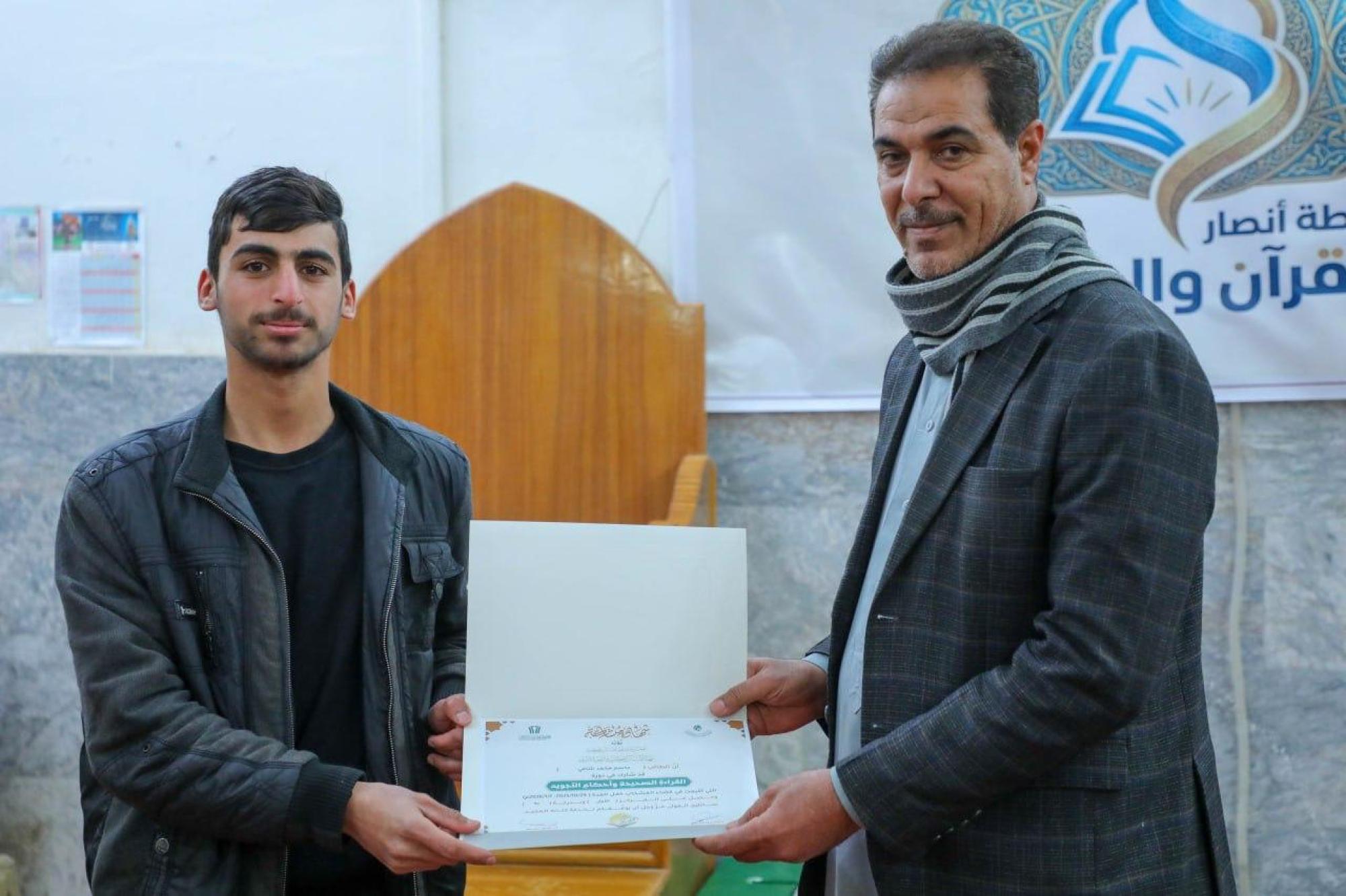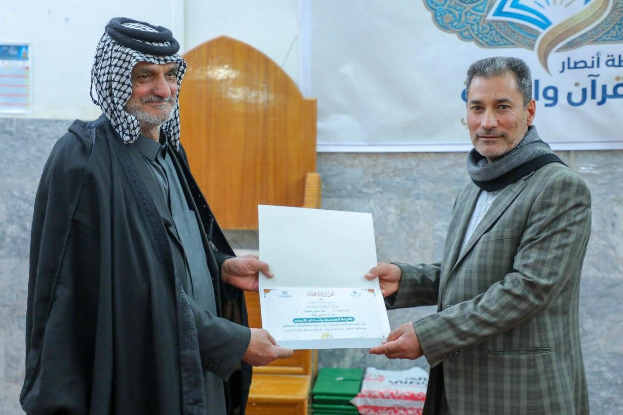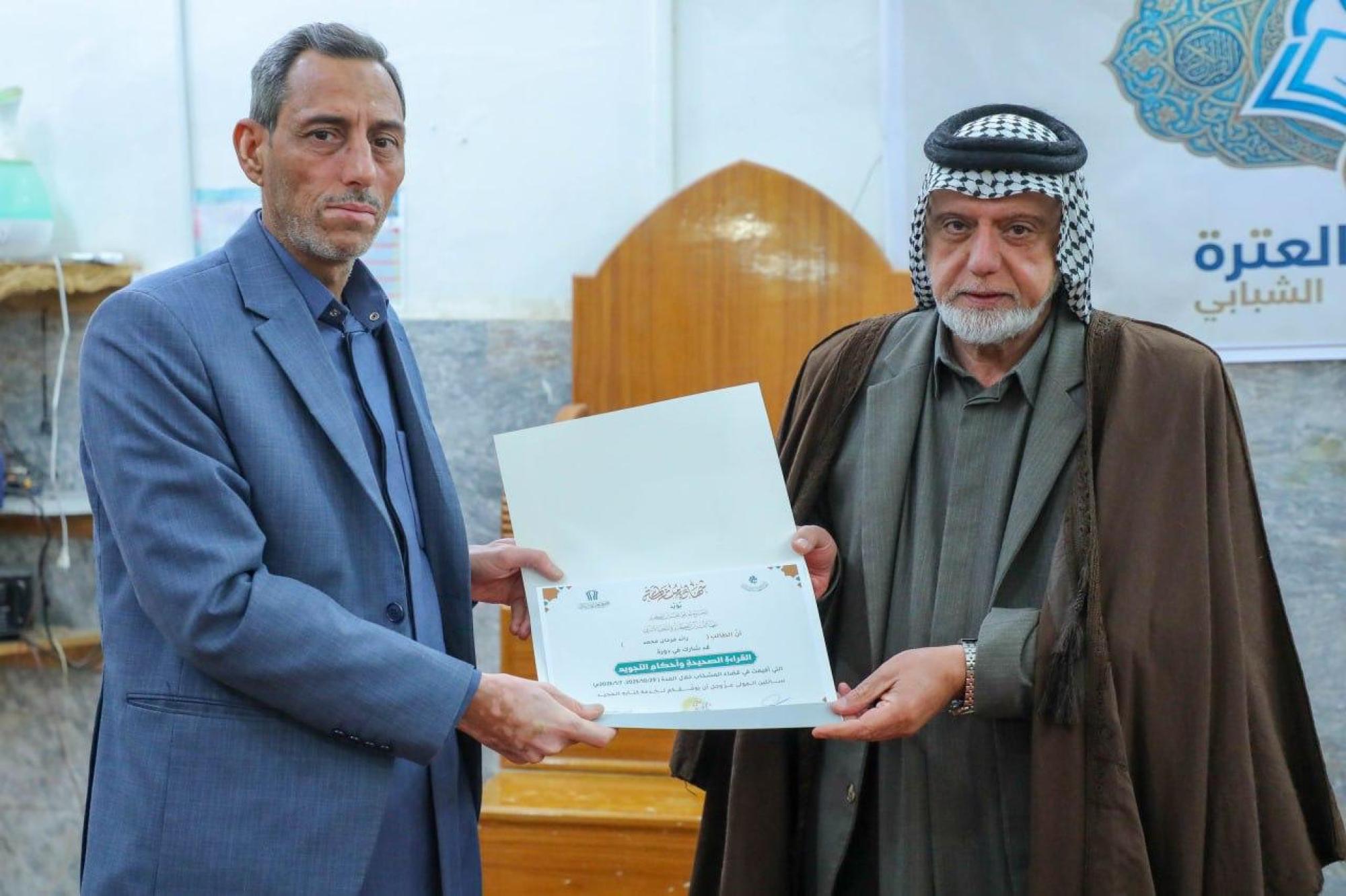 واختُتم الحفل بتكريم الطلبة الأوائل وتوزيع شهادات المشاركة والهدايا التبركية، ضمن برنامجٍ قرآنيّ متكامل يسعى إلى إعداد جيلٍ واعٍ، متقنٍ لتلاوة القرآن الكريم وفق أحكامه الصحيحة.