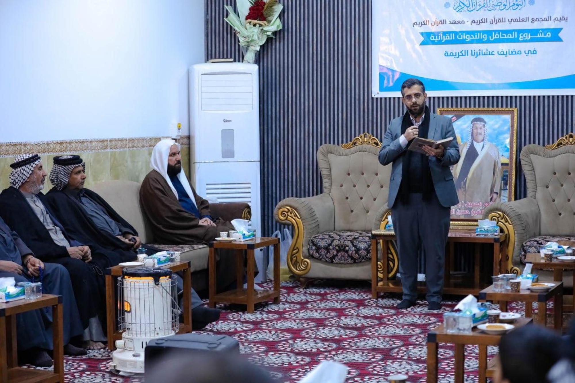 يواصل المَجمَعُ العلميّ للقرآن الكريم في العتبة العبّاسية المقدّسة، تنفيذ أنشطته وبرامجه القرآنية والتعليمية في محافظات النجف وكربلاء وبابل. وتقام هذه البرامج تزامنًا مع اليوم الوطنيّ للقرآن الكريم، ضمن رؤيةٍ تهدف إلى ترسيخ الثقافة القرآنية، وتعزيز الارتباط بكتاب الله العزيز في مختلف شرائح المجتمع. دورات لحفظ القرآن الكريم في محافظة بابل.. افتتح معهدُ القرآن الكريم التابع للمَجمَع في بابل، عددًا من الدورات القرآنية الخاصّة بحفظ كتاب الله العزيز في ناحية سدّة الهندية شمال المحافظة. وقال مسؤول المعهد السيد منتظر المشايخي، إن "المعهد افتتح دورتَينِ تخصّصيّتَين لحفظ القرآن الكريم، إلى جانب دورةٍ خاصّة بحفظ الجزء الثلاثين، تزامنًا مع اليوم الوطنيّ للقرآن الكريم، وبهدف إحياء هذه المناسبة عبر مشاريع تعليمية وتربوية، تُسهم في تعزيز الارتباط بالقرآن الكريم". وأضاف أن "الدورات شهدت إقبالًا واسعًا من الطلبة، وتتضمّن مناهج تعليمية منتظمة بإشراف أساتذة مختصّين، وتركّز على الحفظ المتقن والالتزام بالآداب القرآنية، بما ينسجم مع رسالة المَجمَع العلميّ في خدمة كتاب الله العزيز". إقامة محاضرات قرآنية في محافظة كربلاء.. وفي السياق ذاته، يواصل معهدُ القرآن الكريم التابع للمَجمَع في كربلاء، إقامة مشروعه القرآني في مضايف العشائر الكربلائية. وقال مديرُ المعهد الشيخ جواد النصراوي، إن "المعهد أقام محاضرةً قرآنية بعنوان (التآلف في القرآن الكريم) في مضيف عشيرة الرباح، بالتزامن مع اليوم الوطنيّ للقرآن الكريم، وبحضور جمعٍ من أبناء العشيرة". وأوضح أن "المشروع يهدف إلى ترسيخ القيم القرآنية في هذه الأماكن الأصيلة، ونشر تعاليم القرآن الكريم، مشيرًا إلى أن "اختيار المضايف العشائرية جاء لكونها مُلتقى اجتماعيًا، يُسهم في تعزيز روح التماسك والمحبّة، ونبذ النزاعات، وبناء الوعي الديني السليم". تخريج 30 متدرّبًا في قضاء المشخاب بمحافظة النجف الأشرف.. احتفى معهدُ القرآن الكريم التابع للمَجمَع في النجف الأشرف، بتخرّج 30 متدرّبًا من إحدى دوراته القرآنية في قضاء المشخاب بمحافظة النجف الأشرف. واستُهِلّ الحفل بتلاوة آياتٍ من الذكر الحكيم، أعقبتها كلمةٌ لأستاذ الدورة السيد عبد الرضا العبودي، أكّد فيها أهمّية إتقان أحكام التلاوة ونشرها، لما لها من دورٍ في تعزيز الثقافة القرآنية في المجتمع.