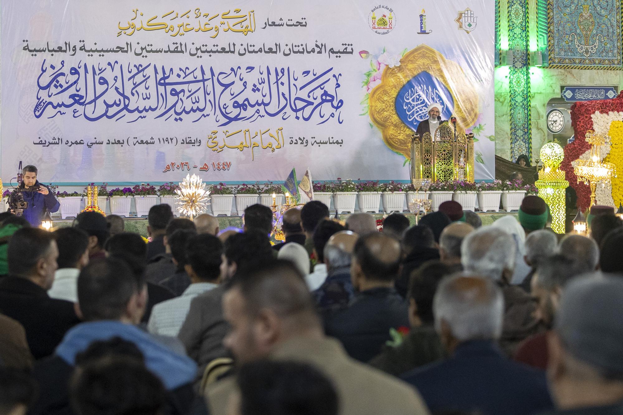 دعت العتبتان المقدّستان الحسينية والعبّاسية إلى اتّباع مبادئ أهل البيت(عليهم السلام)، وتطبيقها في الحياة اليومية. جاء ذلك في أثناء كلمة العتبتين المقدّستَينِ التي ألقاها الشيخ أحمد الصافي رئيسُ قسم الشؤون الدينية في العتبة الحسينيّة المقدّسة، ضمن فعّاليات مهرجان الشموع السادس والعشرين، الذي أُقِيم بمناسبة ذكرى ولادة الإمام المهديّ(عجّل الله فرجَه). وأُقِيم المهرجان في باب القبلة لمرقد أبي الفضل العباس(عليه السلام) تحت شعار (المهديّ وعدٌ غيرُ مكذوب)، وبحضور مسؤولي العتبتَين المقدّستَينِ وشخصيات دينية ورسميّة وجمعٍ غفيرٍ من الزائرين. وقدّم الصافي التهاني والتبريكات للأمّة الإسلامية بالذكرى العطرة لولادة صاحب العصر والزمان الإمام المهديّ(عجّل الله فرجَه)، في الخامس عشر من شهر شعبان المبارك، مشيرًا إلى أهمّية وعظمة هذه الليلة المباركة. وأكّد على ضرورة اتّباع المبادئ والتعاليم والقيم الإسلامية والأخلاقية التي دعا إليها أهل البيت (عليهم السلام)، والاقتداء بها وتطبيقها في الحياة اليوميّة كجزءٍ من ثقافة الانتظار الواعي للفرج؛ كما أنّها تُسهم في إصلاح الأفراد والمجتمع وتعزيز السلوك القويم.