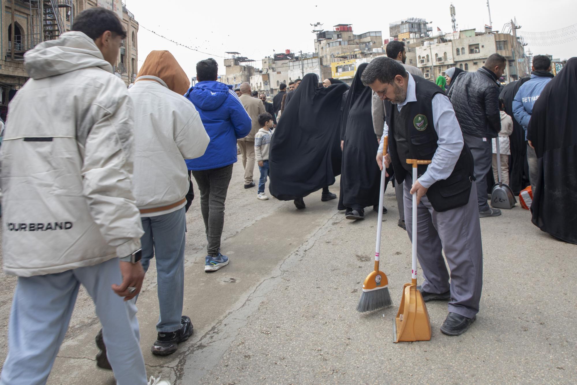 أكّد قسمُ الشؤون الخدمية في العتبة العبّاسية المقدّسة مشاركة نحو 2000 متطوع في تقديم الخدمات لزائري النصف من شعبان. وقال معاون رئيس القسم السيد عباس علي أبو العوف: إنّ "القسم أعدّ خطة خدمية وتنظيمية متكاملة لإحياء ذكرى ولادة الإمام المهدي (عجّل الله فَرَجه) في النصف من شهر شعبان المبارك، بمشاركة نحو 2000 متطوّع". وأضاف أنّ "الخطة تتضمّن توزيع الثلج والمياه مجانًا على المواكب الحسينية والزائرين عَبرَ شعبة السقاية، إلى جانب تخصيص شعبة الكيشوانيات والأمانات لحفظ أغراض الزائرين وحقائبهم". وبيّن معاون رئيس القسم أنّ "شعبة النظافة تضطلع بمهمّة غسل وتنظيف محيط العتبة العبّاسية المقدّسة بالجهد البشري والآلي، وباستخدام العجلات وكابسات النفايات، فضلًا عن تنفيذ أعمال التنظيف على مدار الساعة" مشيرًا إلى "توفير جميع المتطلّبات اللوجستية للزائرين، وتهيئة المجاميع الصحية بالمستلزمات اللّازمة".