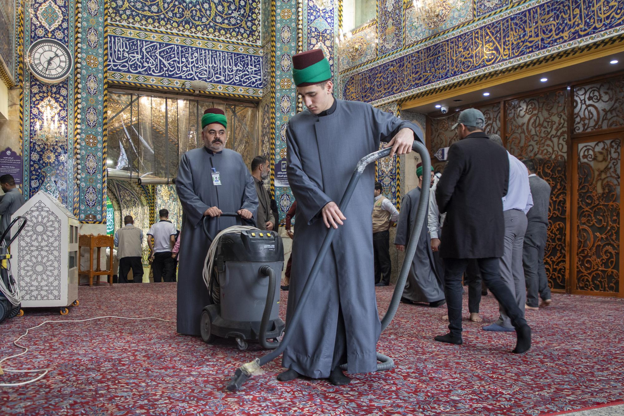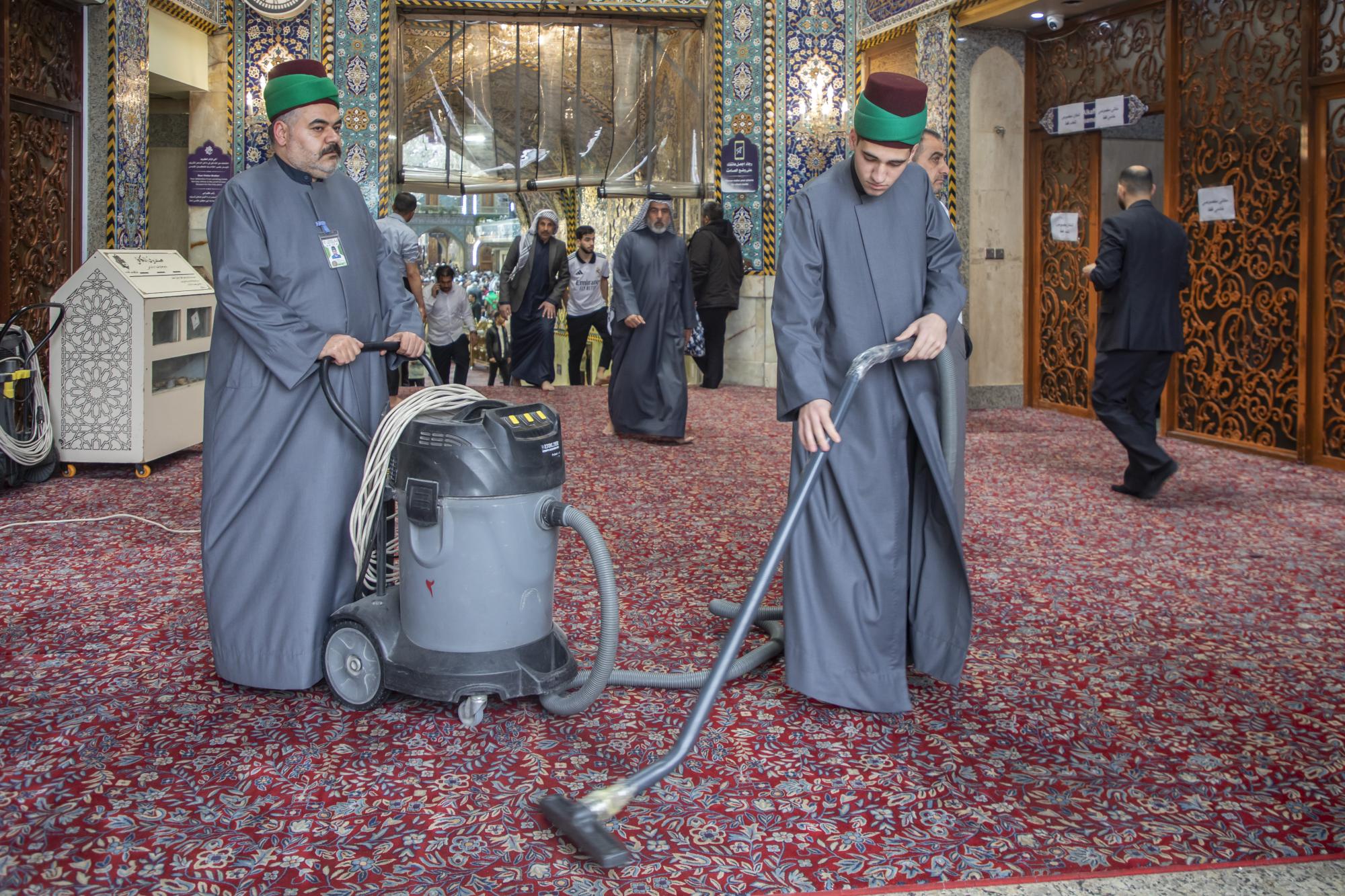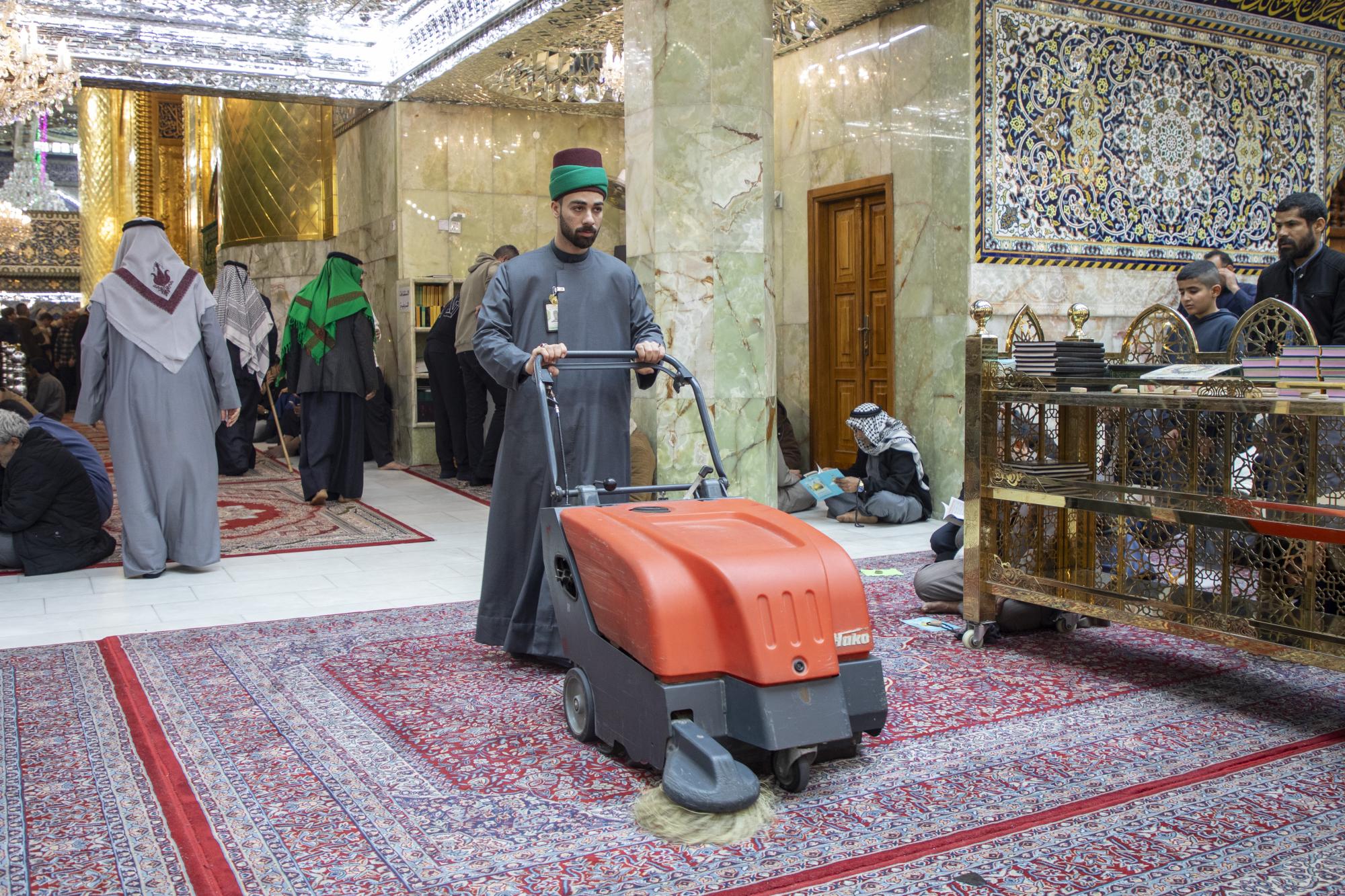 تستقبل شعبة السادة الخدم في العتبة العباسية المقدسة جموع المؤمنين الوافدين لإحياء ذكرى ولادة الإمام المهدي (عجّل الله فرجه)، عبر تقديم مجموعة من الخدمات. وقال مسؤول وحدة الصحن الشريف التابعة للشعبة، السيد فائز آل طعمة: إنّ "ملاكات الشعبة باشرت استقبال الزائرين الوافدين لمرقد أبي الفضل العباس (عليه السلام)؛ للمشاركة في إحياء ذكرى ولادة الإمام المهدي (عجّل الله فرجه)، عبر تنفيذ مجموعة من الخدمات التنظيمية والخدمية داخل الحرم الطاهر". وأضاف أنّ "الأعمال تشمل تنظيف صحن مرقد أبي الفضل العباس (عليه السلام)، وإدامة شباك المرقد الشريف، فضلًا عن ترتيب المكتبات والمتارب، وزيادة عدد كتب الزيارة لتلبية احتياجات المؤمنين".