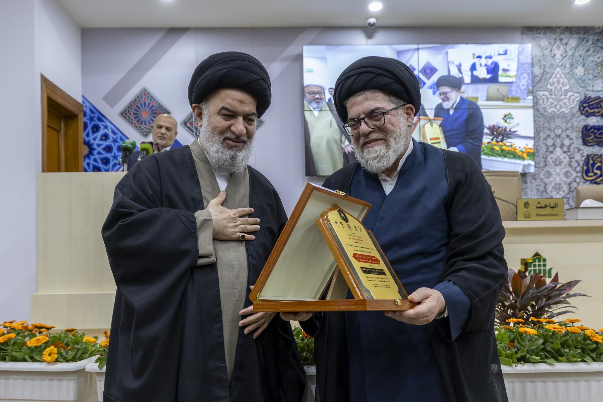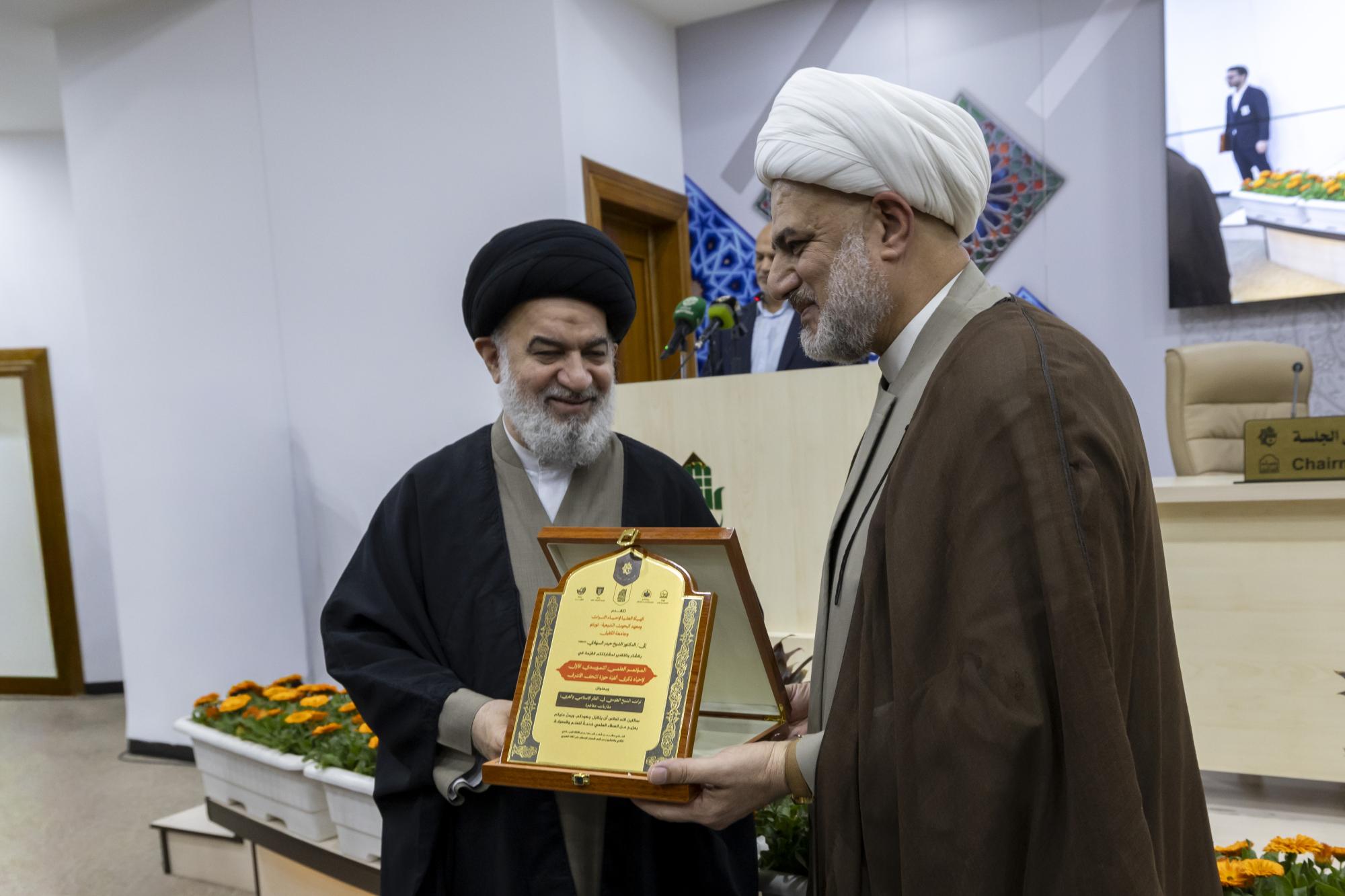 سماحة السيد الصافي يكرّم المشاركين في الجلسة البحثية الافتتاحية للمؤتمر التمهيدي لإحياء ذكرى ألفية حوزة النجف الأشرف