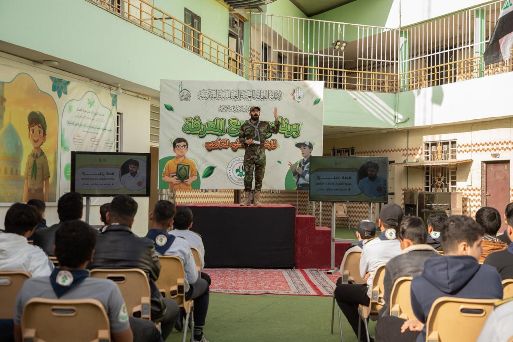أقام قسم الشؤون الفكرية والثقافية في العتبة العباسية المقدسة دورة فتيان الكفيل المهدوية بمشاركة أكثر من 150 عنصرًا كشفيًّا، ويواصل فعاليات برنامجه الخاص بفئة الأشبال في كربلاء، استثمارًا للعطلة الربيعية. وقال المفوّض العام لجمعية كشافة الكفيل التابعة للقسم السيد علي الأسدي: إنّ "دورة فتيان الكفيل المهدوية تأتي ضمن فعاليات برنامج ربيع المعرفة المهدوي الترفيهي، بمشاركة أكثر من 150 عنصرًا كشفيًّا، في أجواء مليئة بالنشاط والتفاعل". وأضاف أنّ "إحدى الفقرات التفاعلية في الدورة هي فقرة قصة شهيد، التي تهدف إلى إحياء الذاكرة التاريخية وتعزيز القيم الوطنية والدينية لدى المشاركين، بما يسهم في تنمية روح الانتماء والمسؤولية لديهم".