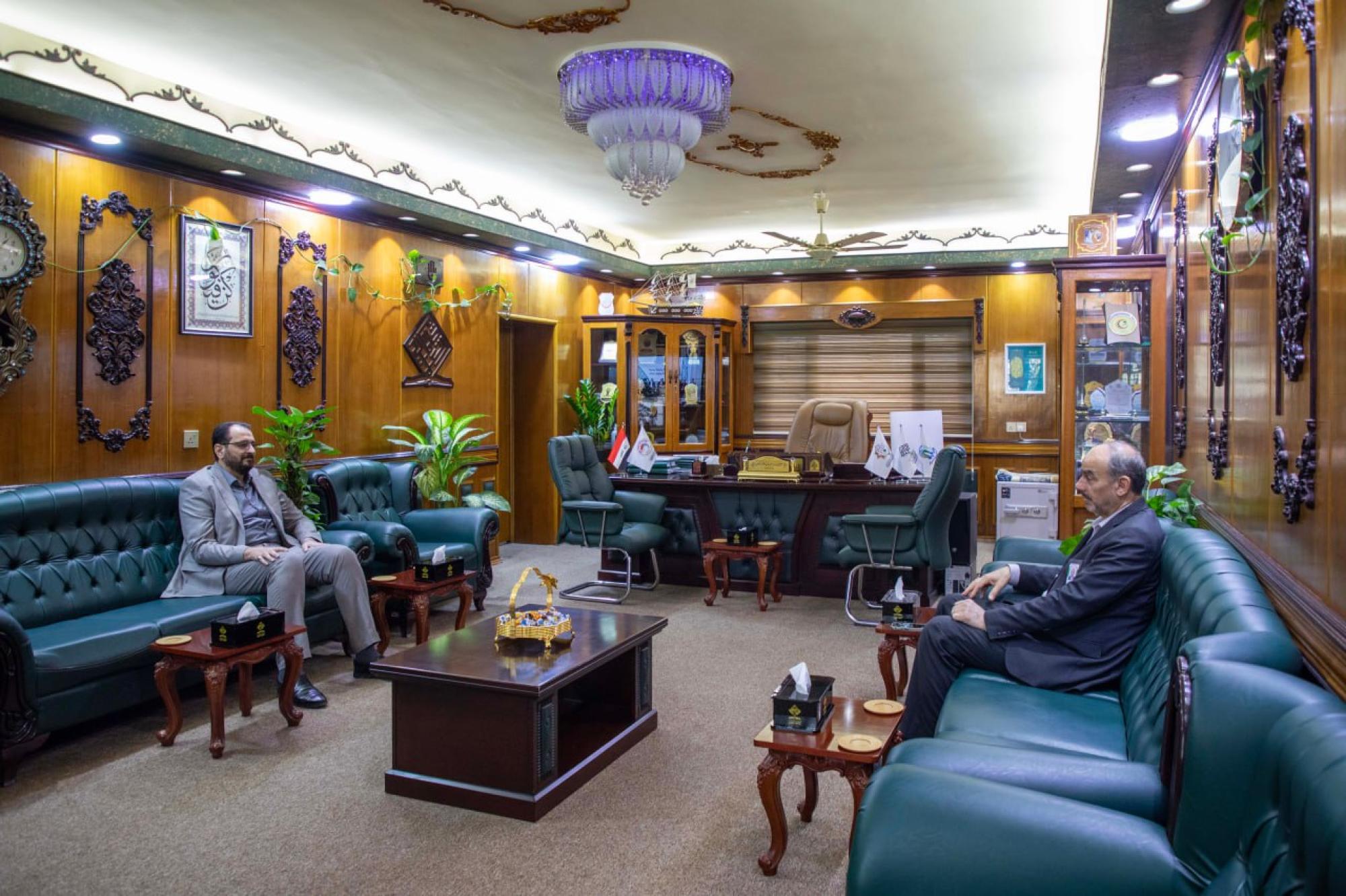 اطّلع رئيس هيأة التربية والتعليم العالي في العتبة العباسية المقدسة وعضو مجلس إدارتها، الدكتور عباس الدده الموسوي، على سير العملية التعليمية في جامعة العميد. جاء ذلك في أثناء زيارته للجامعة ولقائه رئيسها الدكتور جودت نوري الجشعمي، لمراجعة سير العملية التعليمية، واستعراض البرامج الأكاديمية القائمة، إضافةً إلى البحث في سبل تطوير البيئة التعليمية بما يتوافق مع أهداف الجامعة الأكاديمية. وأكّد الطرفان على أهمية الارتقاء بالمستوى العلمي وتعزيز جودة المخرجات التعليمية، مع التركيز على دعم الأنشطة البحثية وتوفير البيئة الأكاديمية الملائمة للطلبة والتدريسيين، بما يسهم في تحقيق رؤية الجامعة وتطوير أدائها الأكاديمي على وَفقِ معايير الجودة والاعتماد المؤسّسي.