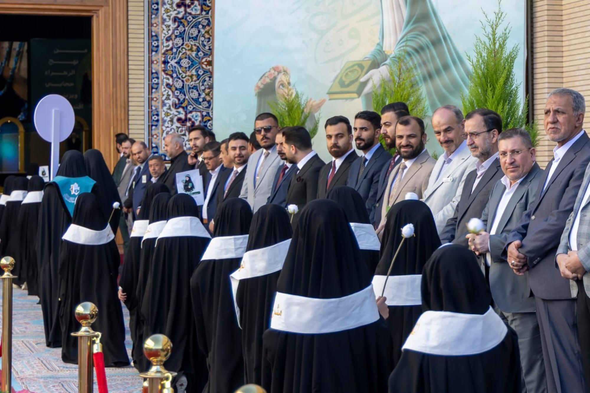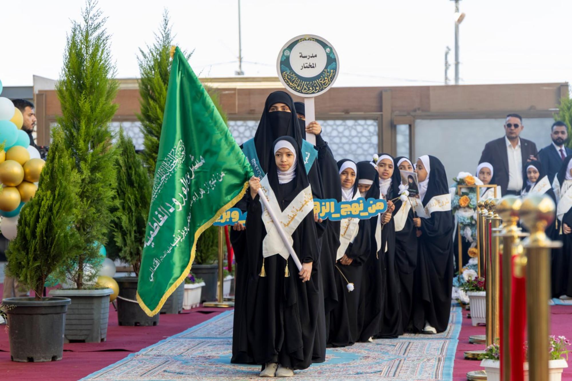 شهد مجمع أبي الفضل العباس (عليه السلام) الخدمي، التابع للعتبة العباسية المقدسة بدء مسير التلميذات المشاركات في فعاليات اليوم الثاني لحفل التكليف المركزي الثامن. وتقيم الحفل شعبة الخطابة الحسينية النسوية التابعة لمكتب المتولي الشرعي للشؤون النسوية في العتبة المقدسة، بالتعاون مع مديرية تربية محافظة كربلاء، ضمن مشروع الورود الفاطمية، تحت شعار (من نهج الزهراء حجابي وبزينب اقتدائي)، وبمشاركة أكثر من ستة آلاف تلميذة من مدارس المحافظة. وتتضمن فعاليات اليوم الثاني عددًا من الفقرات، منها: كلمة العتبة العباسية المقدسة، وترديد عهد التكليف، وكلمة مديرية تربية محافظة كربلاء، وعرض فيديوي عن مشروع (الورود الفاطمية)، فضلًا عن تقديم نشيد التكليف وعرض مسرحي.