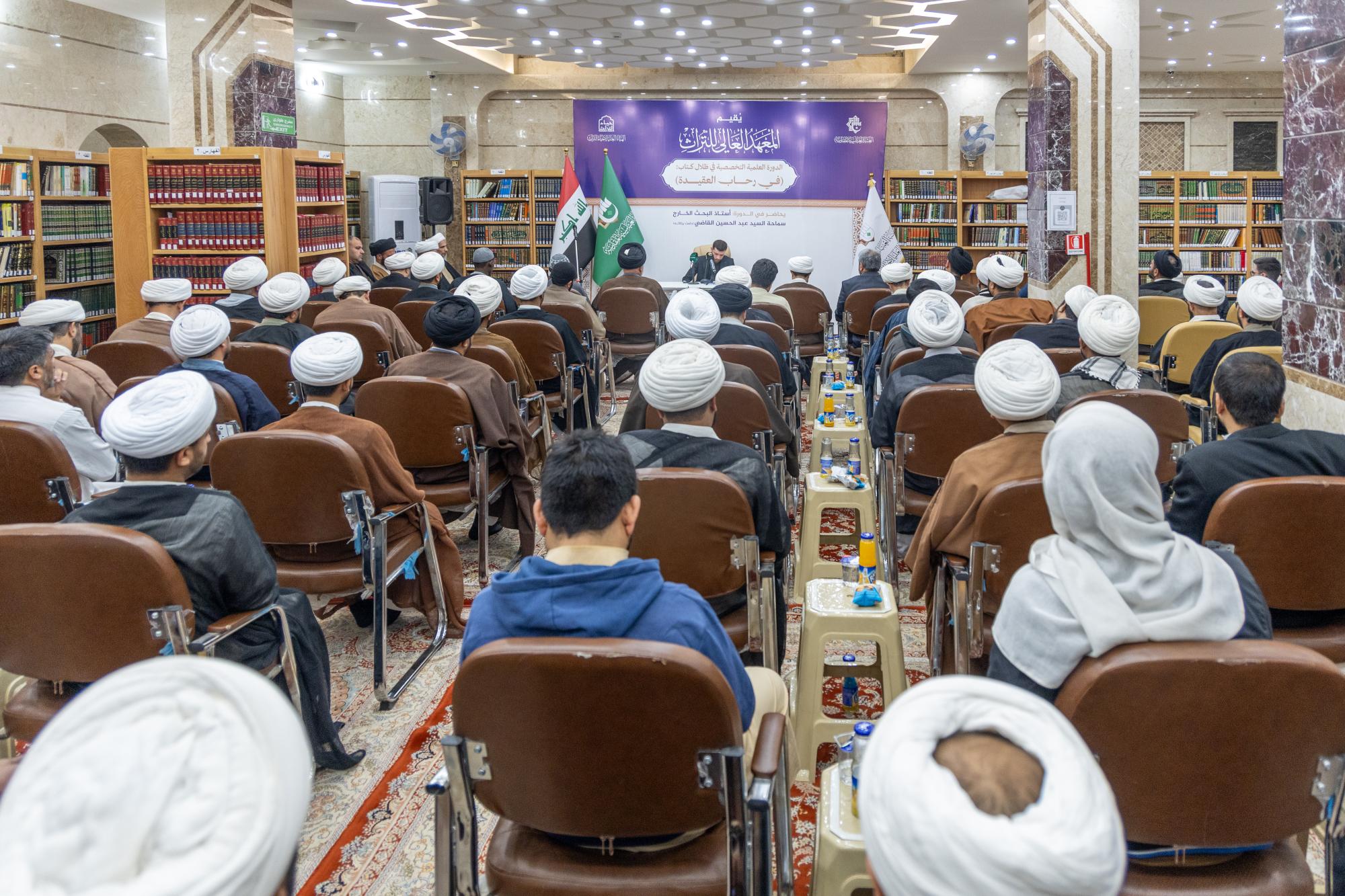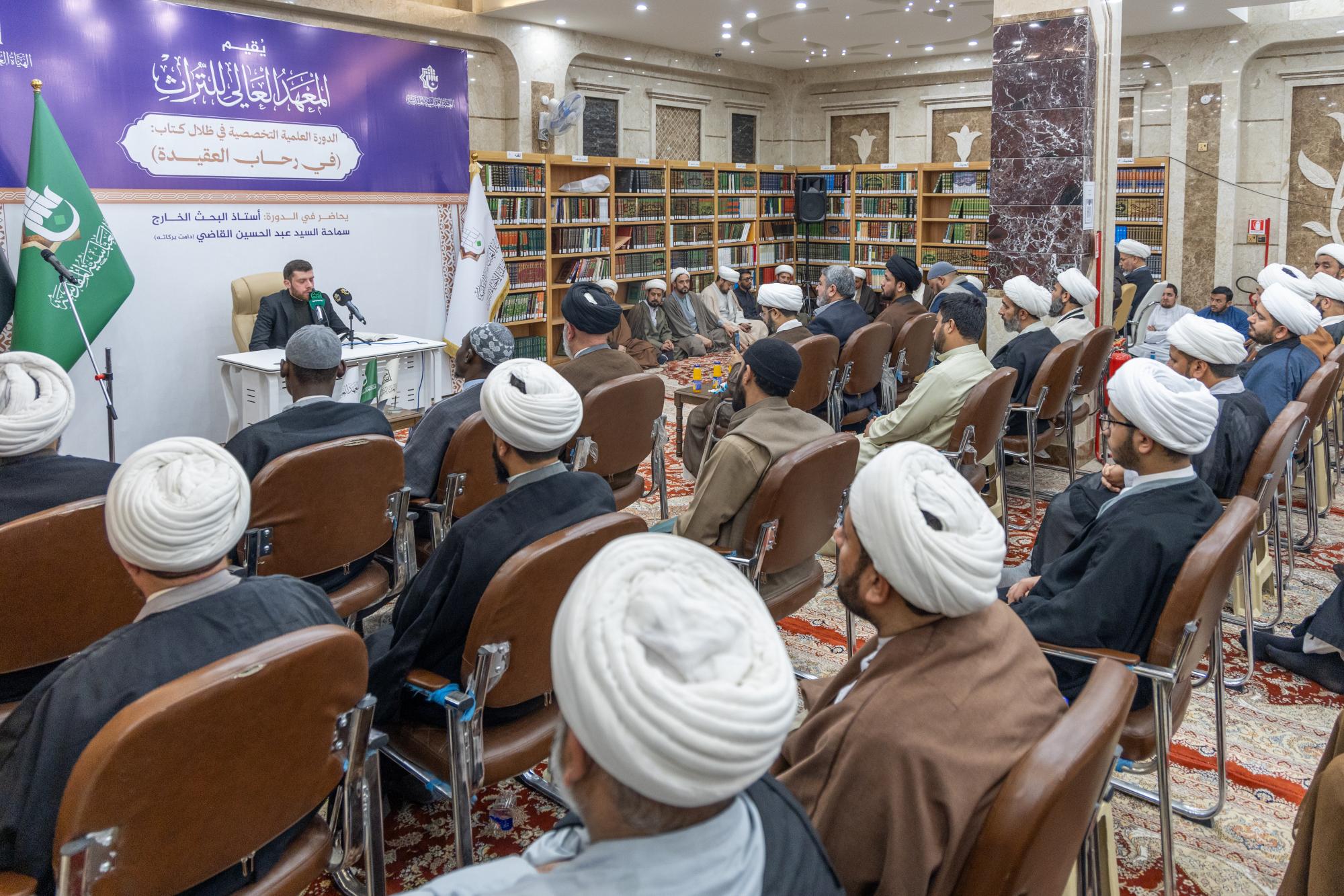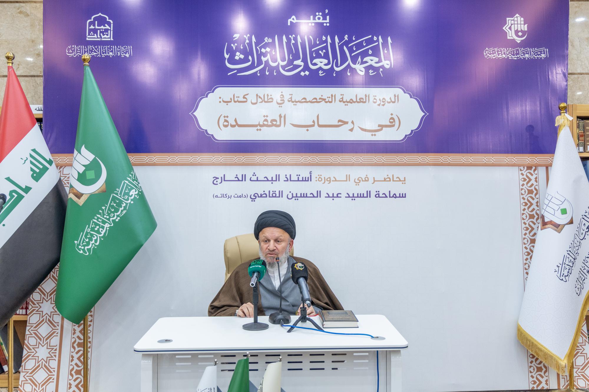 اختتمت الهيأة العليا لإحياء التراث في العتبة العباسية المقدسة دورتها العلمية (في رحاب العقيدة). واستُهلت فعاليات ختام الدورة بتلاوة آيات من الذكر الحكيم، وكلمة للهيأة العليا لإحياء التراث ألقاها مدير المعهد العالي للتراث التابع للهيأة السيد عبد الحكيم الصافي، وكلمة للمحاضر في الدورة أستاذ البحث الخارج في الحوزة العلمية بالنجف الأشرف السيد عبد الحسين القاضي. وقال الصافي، إنَّ "الدورة استمرت أربعة أسابيع متواصلة، وجاءت في ظلال كتاب (في رحاب العقيدة) للسيد محمد سعيد الحكيم (قدس سره)، إذ تضمنت قراءة تحليلية معمقة لأبرز مباحثه العقائدية وما اشتمل عليه من رؤى علمية رصينة". وبيَّن أنَّ المحاضرات قدَّمها أستاذ البحث الخارج في الحوزة العلمية بـالنجف الأشرف، السيد عبد الحسين القاضي، بأسلوب اتسم بالتحقيق العلمي والوضوح في الطرح، مسلطًا الضوء على المحاور التي تمس حاجة طلبة الحوزة في مجالات المحاورة والمحاججة وترسيخ المباني العقائدية.