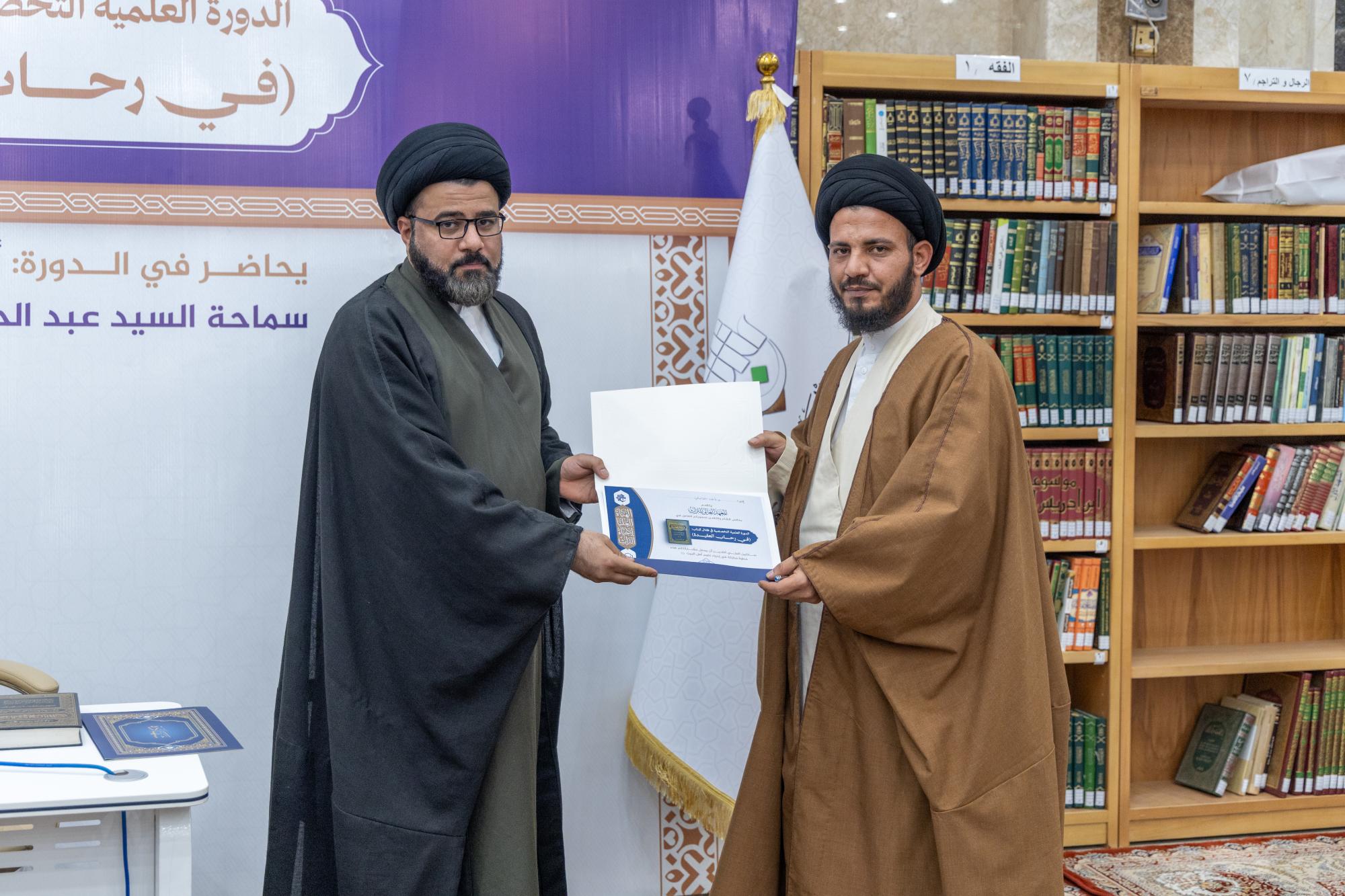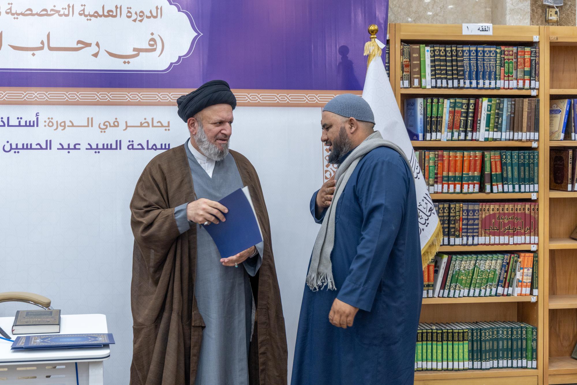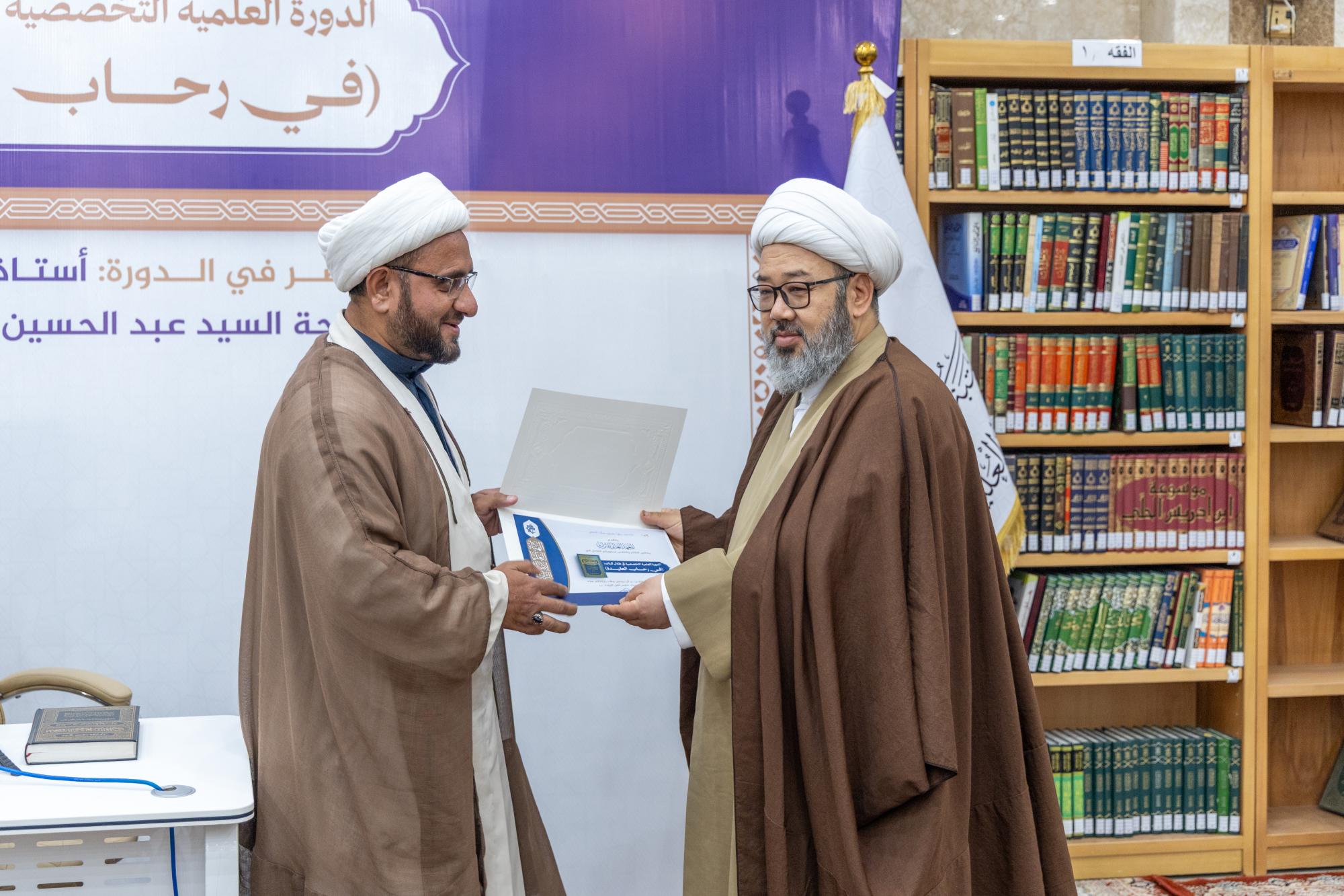 وأشار الصافي إلى أنَّ الدورة شهدت مشاركة نحو 140 طالبًا من الحوزة العلمية في النجف الأشرف، الذين تفاعلوا مع مباحث الكتاب واستفادوا من مضامينه التي تمتاز بعمق الطرح ودقة الاستدلال وقوة البيان، مؤكدًا أنَّ المعهد ماضٍ في تنظيم برامج مماثلة تسهم في إحياء التراث العلمي وترسيخ الهوية المعرفية الرصينة. وفي الختام كرمت الهيأة العليا لإحياء التراث المساهمين والمشاركين في إنجاح فعاليات الدورة من طلبة العلوم الدينية في حوزة النجف الأشرف.