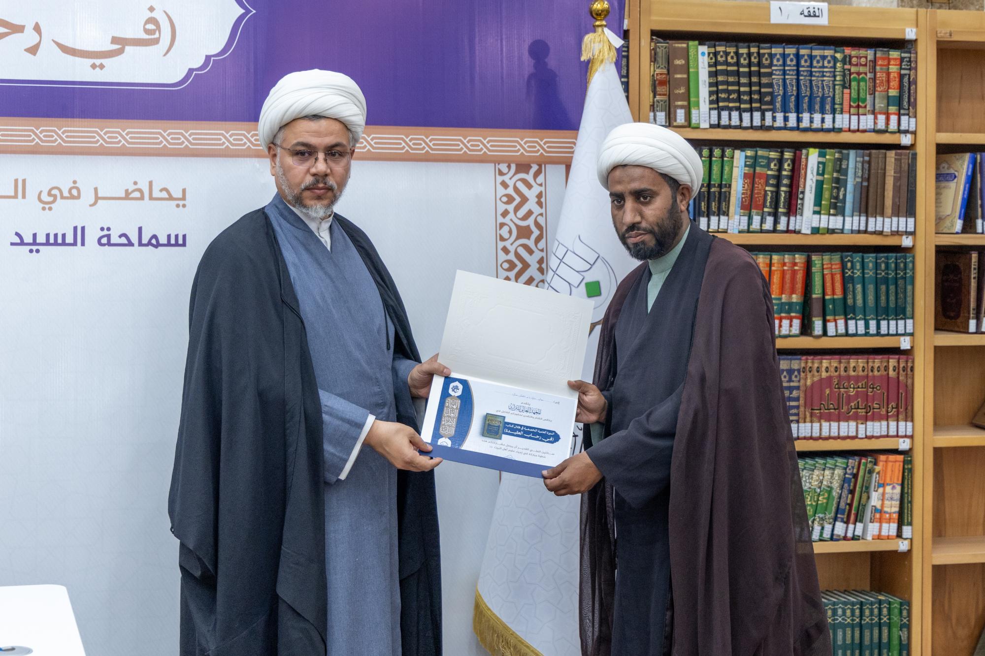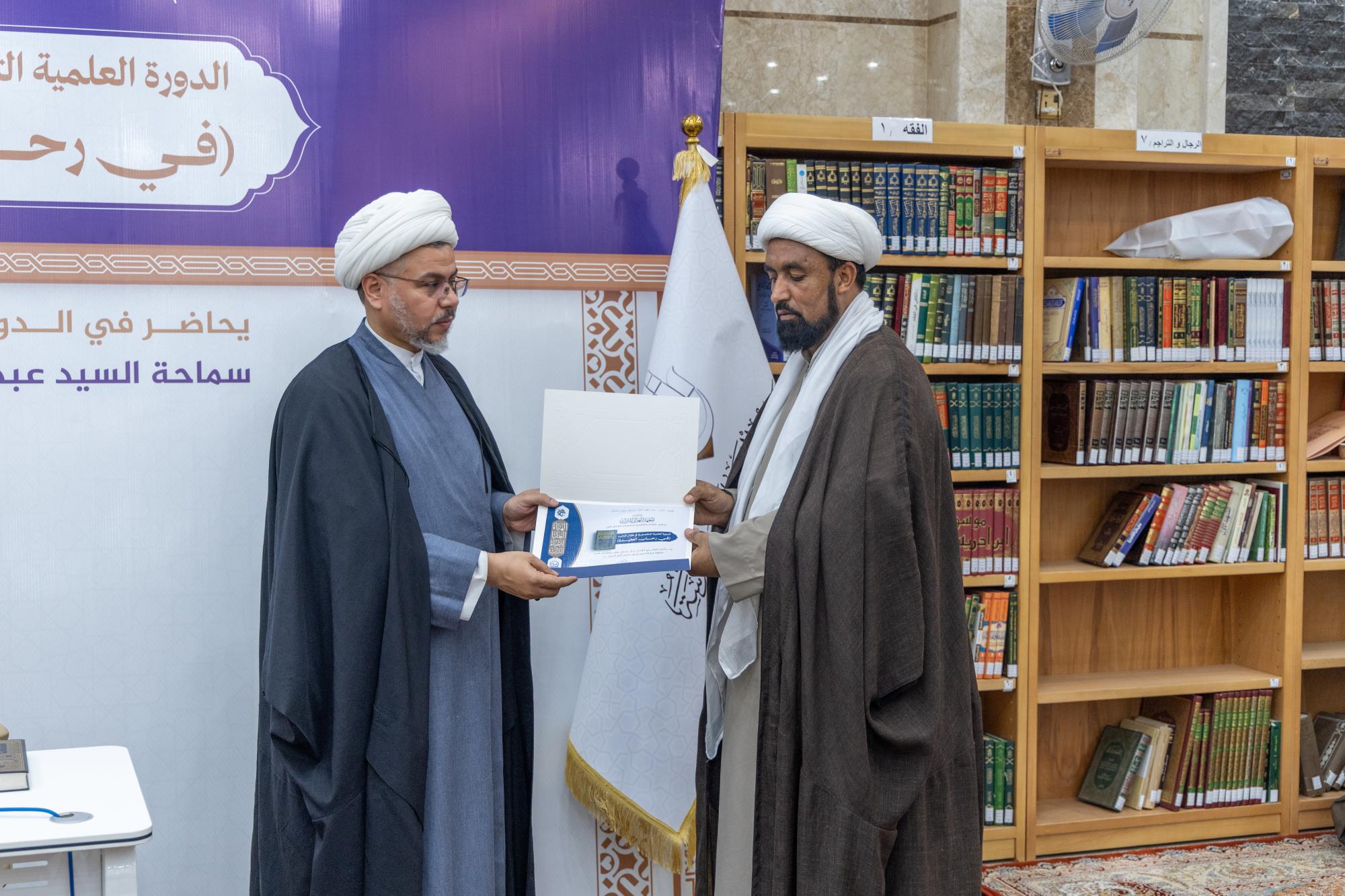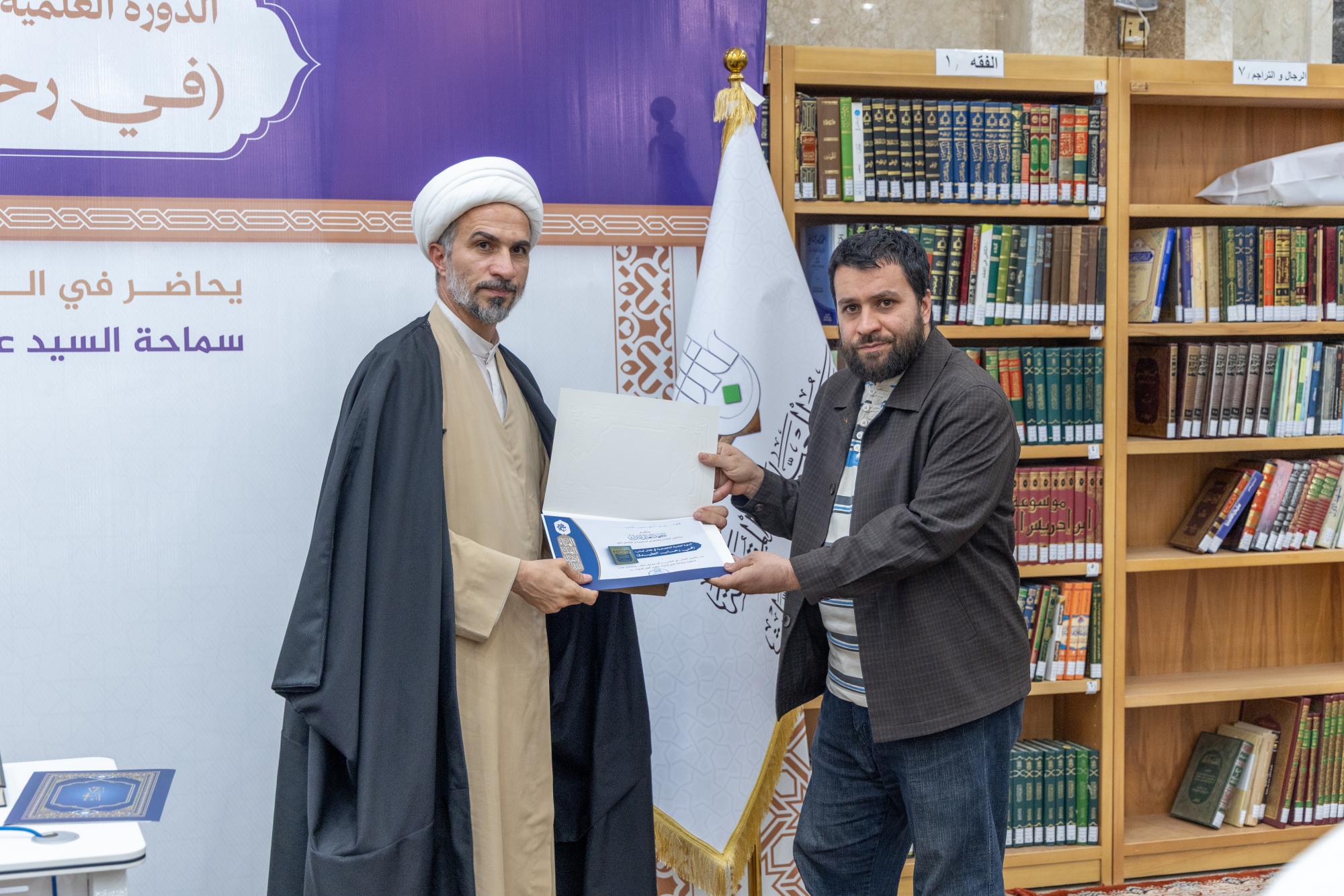 وأشار الصافي إلى أنَّ الدورة شهدت مشاركة نحو 140 طالبًا من الحوزة العلمية في النجف الأشرف، الذين تفاعلوا مع مباحث الكتاب واستفادوا من مضامينه التي تمتاز بعمق الطرح ودقة الاستدلال وقوة البيان، مؤكدًا أنَّ المعهد ماضٍ في تنظيم برامج مماثلة تسهم في إحياء التراث العلمي وترسيخ الهوية المعرفية الرصينة. وفي الختام كرمت الهيأة العليا لإحياء التراث المساهمين والمشاركين في إنجاح فعاليات الدورة من طلبة العلوم الدينية في حوزة النجف الأشرف.