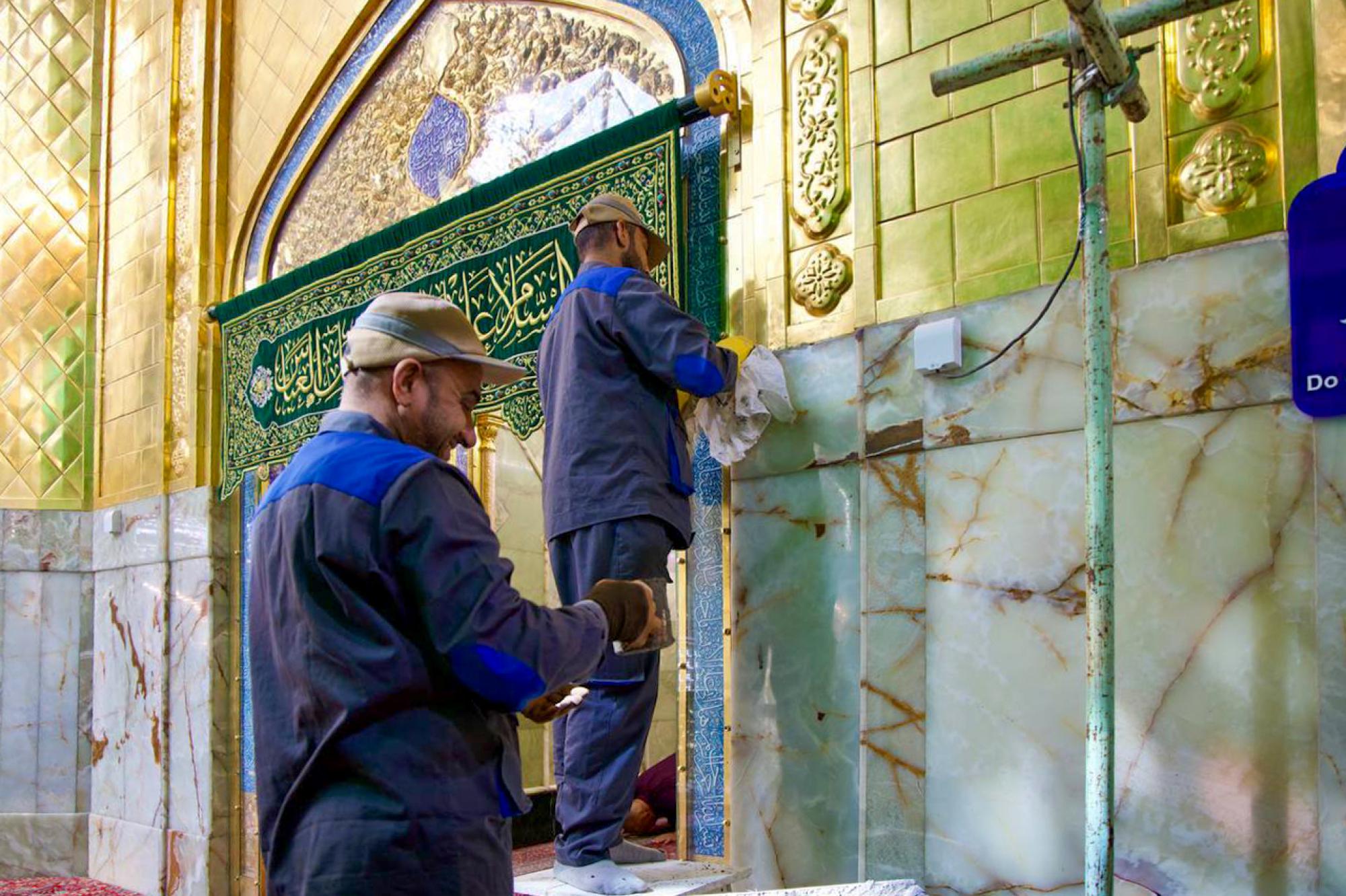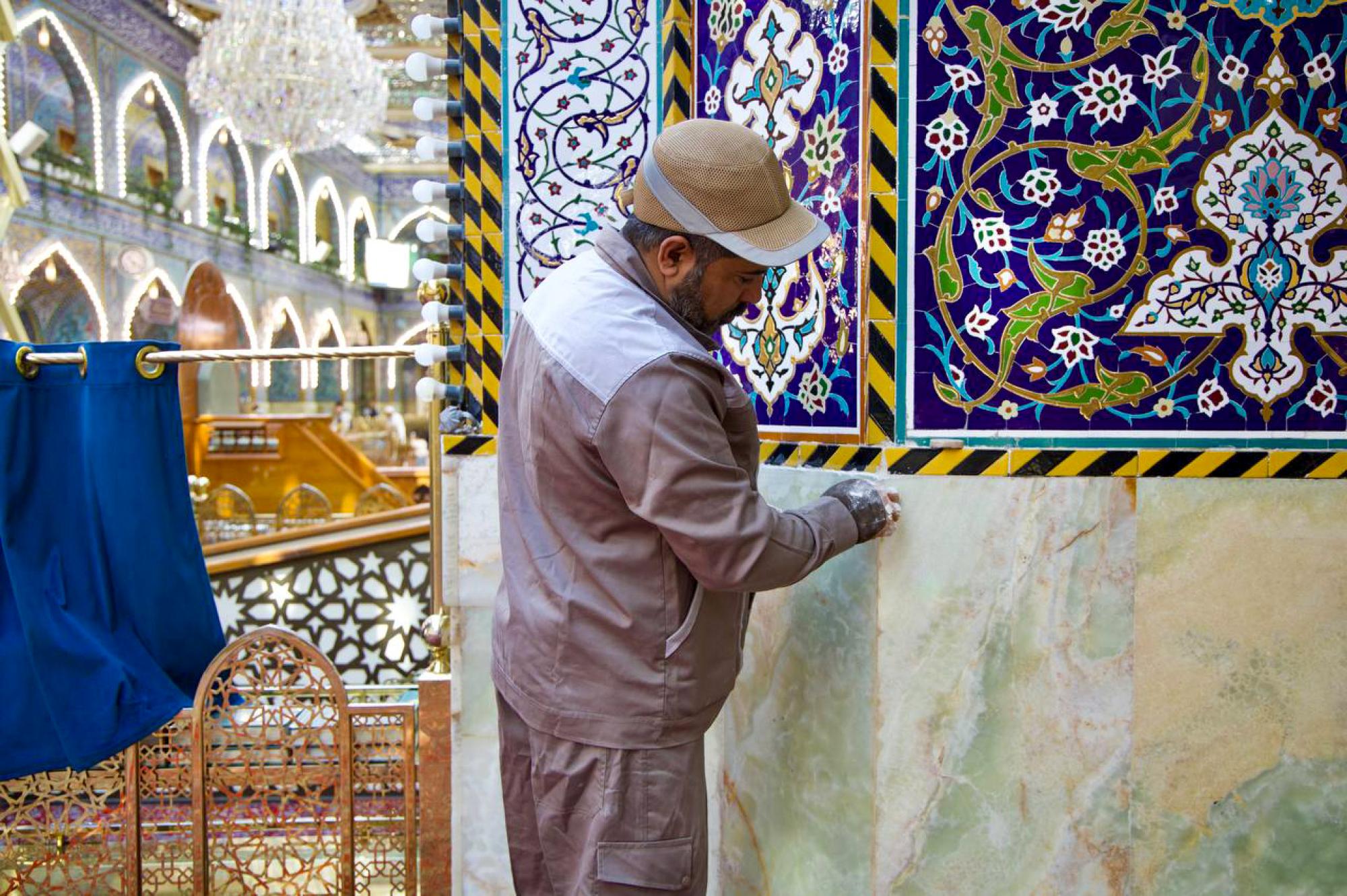 أجرى قسم الصيانة والإنشاءات الهندسية في العتبة العباسية المقدسة أعمال الإدامة الدورية لجدران حرم مرقد أبي الفضل العباس (عليه السلام). وقال مسؤول وحدة البناء التابعة إلى شعبة الأعمال الإنشائية في القسم، السيد محمد عبد النبي: إنّ "ملاكاتنا الفنية نفذت أعمال الإدامة الدورية للمرمر الحضروي (الأونكس) المثبت في جدران الحرم الشريف؛ من أجل الحفاظ على جودته وإظهاره بالشكل الذي يليق بمكانة المرقد الطاهر". وأضاف أنّ "أعمال الإدامة نُفذت باستخدام مواد وتقنيات خاصة ذات جودة وكفاءة عاليتين، لضمان إزالة الشوائب من المرمر من دون التأثير في خصائصه وقيمته المعمارية مع الالتزام بأعلى معايير الدقة في تنفيذ العمل".