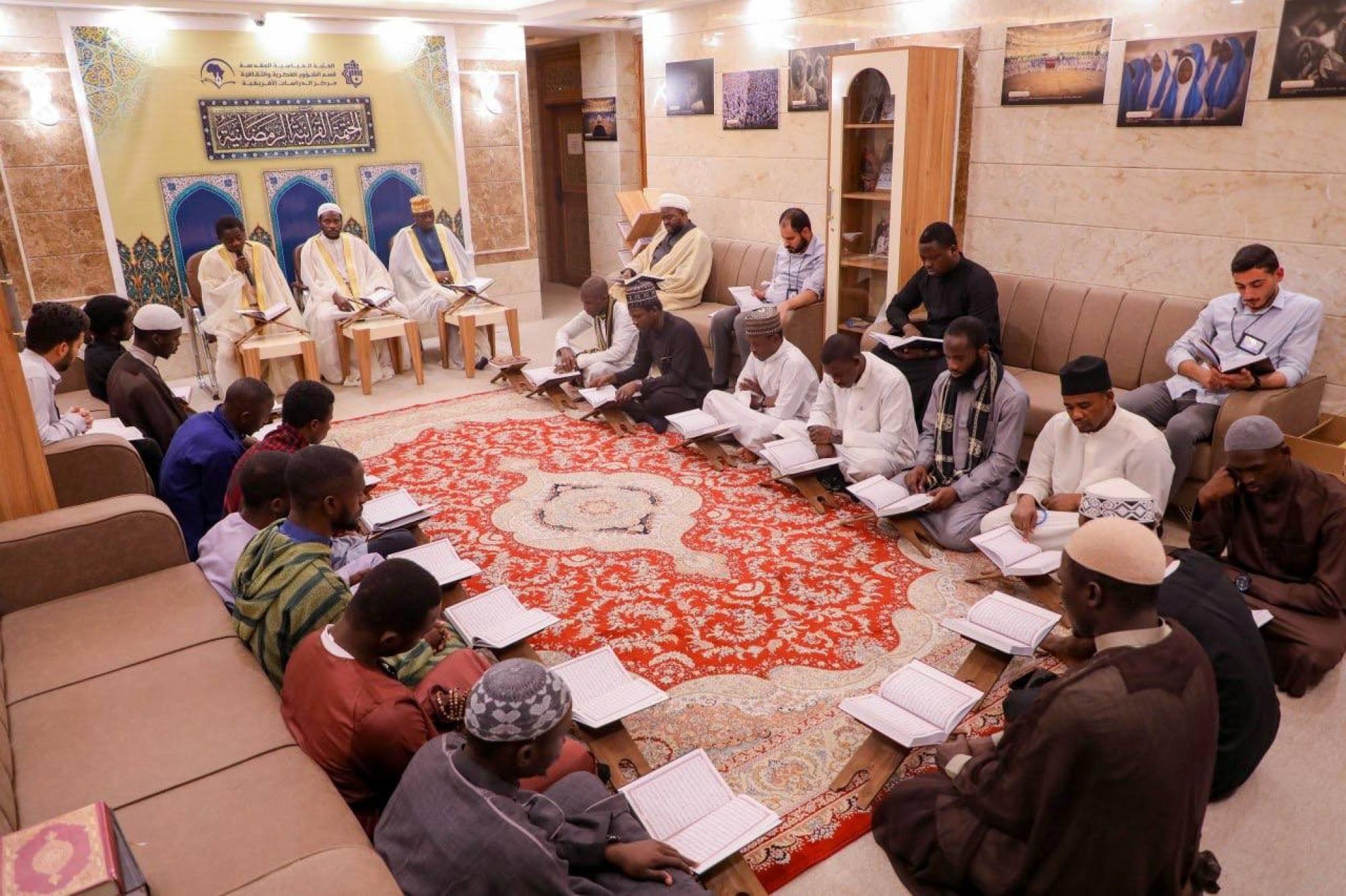 نظّم قسمُ الشؤون الفكرية والثقافية في العتبة العبّاسية المقدّسة، ختمةً قرآنية رمضانية لطلبة العلوم الدينية من الجالية الإفريقية في النجف الأشرف. وقال مسؤولُ وحدة التبليغ في مركز الدراسات الإفريقية التابع للقسم، السيد مسلم الجابري: إن "الختمة القرآنية تشهد في أيّامها الأولى أجواءً إيمانيةً تجسّدت فيها معاني التدبّر والخشوع في أثناء تلاوة آيات الذكر الحكيم، بمشاركة طلبة العلوم الدينيّة الأفارقة".
