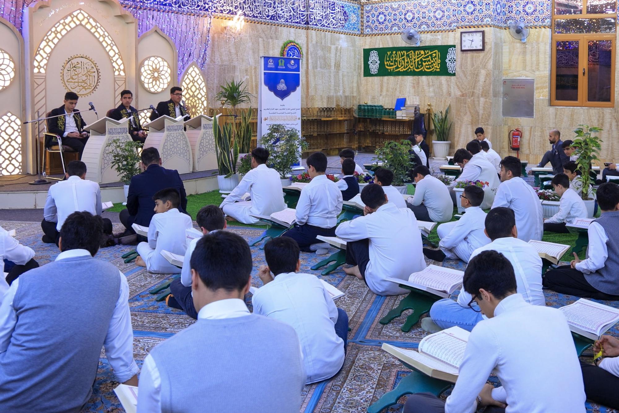 أطلق المجمع العلمي للقرآن الكريم في العتبة العباسية المقدسة الختمة القرآنية المرتلة حفظًا بنسختها الخامسة في مقام الإمام المهدي (عجّل الله فرجه). وقال رئيس المجمع الدكتور مشتاق العلي: إنّ المجمع ممثلًا بوحدة التحفيظ في معهد القرآن الكريم بمحافظة كربلاء المقدسة، شرع بإقامة الختمة القرآنية الرمضانية المرتلة حفظًا في مقام الإمام المهدي (عجّل الله فرجه). وأضاف، أنّ ما يميز الختمة هو تلاوتها عن ظهر قلب من قبل حفاظ المعهد بفئتي الأطفال والفتيان، مؤكدًا أنّها تأتي ضمن الأنشطة الهادفة إلى إشاعة الثقافة القرآنية في المجتمع. وبيّن مسؤول وحدة التحفيظ في المعهد الشيخ علي الرويعي، أنّ النسخة الخامسة من الختمة القرآنية المرتلة لهذا العام تشهد مشاركة نحو 65 طالبًا من حفاظ القرآن الكريم، ويرتقي يوميًّا المنصة 5 طلاب لقراءة جزء كامل حفظًا عن ظهر قلب.